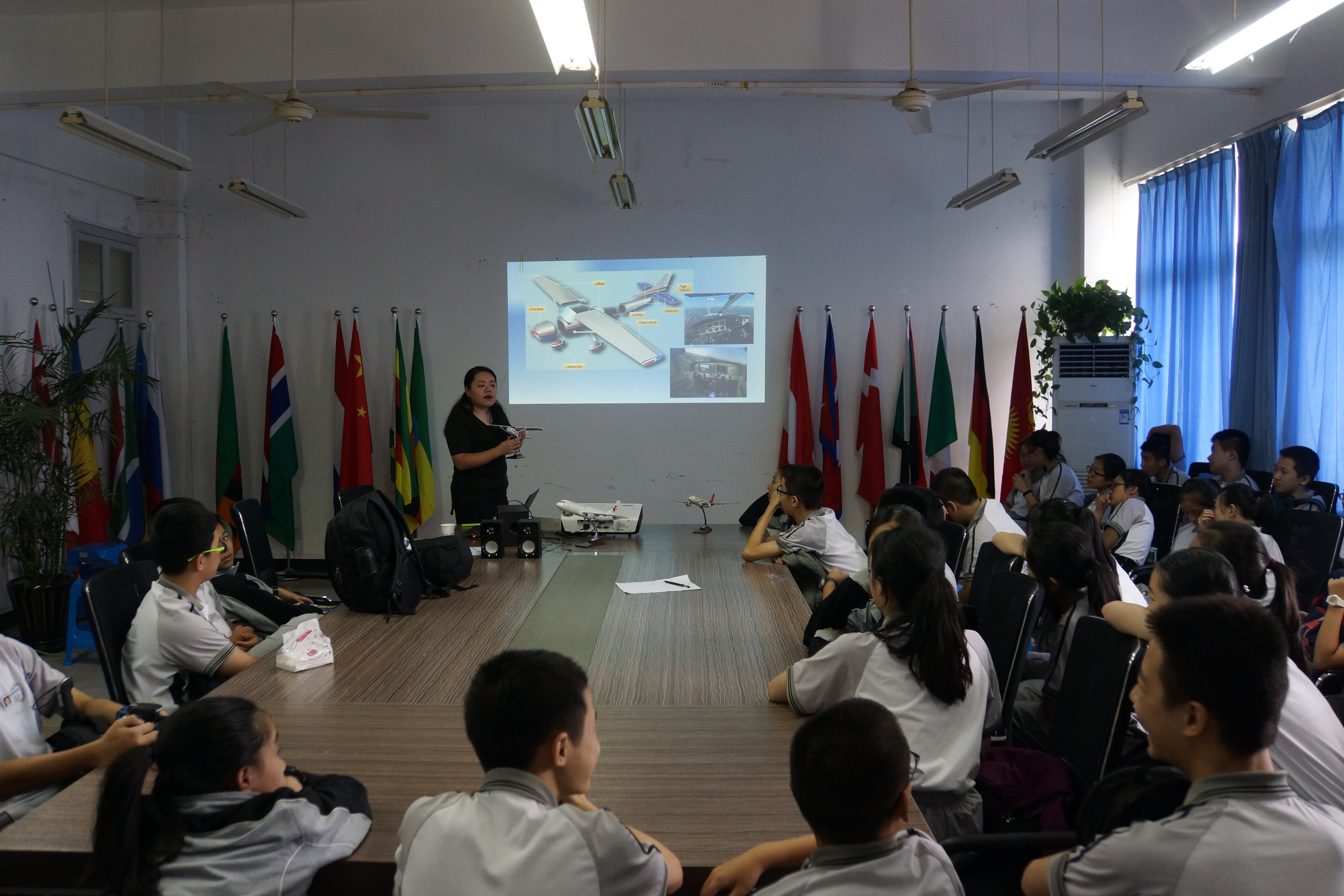 随后,航空管理教研室主任陈宁颖老师为同学们开设了航空知识小课堂,让同学们了解航空的基本常识和飞行的基本原理,并掌握模拟飞行器的主要结构和操作方法。
