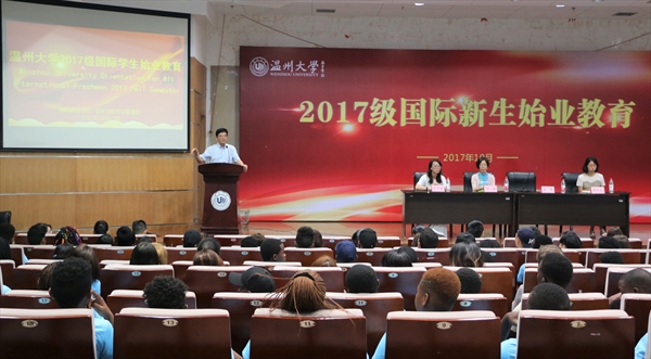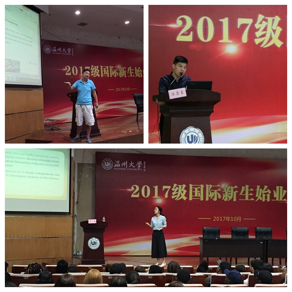 领导班子、班主任、科室负责人、任课教师及辅导员老师出席。副院长陈军主持并讲话,与会其他人员一一作英文自我介绍并为国际新生送上寄语与祝福。院长兼书记叶苗教授聚焦“读温州、读大学、爱专业”三个层面为新生开启全英文的“院长第一课”,引导国际学生了解中国、了解温州、了解温大,进而热爱中国,热爱温州,融入温大,真正使自己学有所得、学有所获,做一个对社会有用的和谐的人。