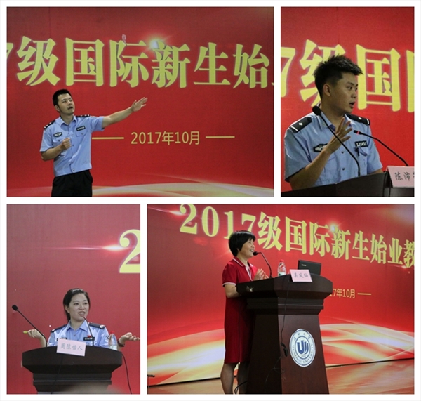 茶山派出所陈沛豪、周陈怡人两位警官分别为国际学生作交通、人身和财产安全方面专题辅导,市公安局出入境管理局欧阳超警官作国际学生签证、居留许可办理相关知识专题讲座。校图书馆吴凤仙老师带领国际学生参观了育英图书馆并作入馆五楼自拍