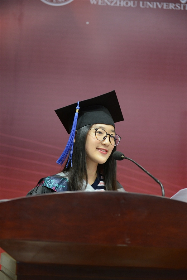 海外合作项目中最优秀的学生。她用形象生动的故事叙述了毕业的意义,并希望毕业生们不管是继续深造还是踏上社会,都要微笑着面对学习和生活,期望他们在今后的人生旅程中继续努力拼搏,为自己创造一个更加美好的未来。
