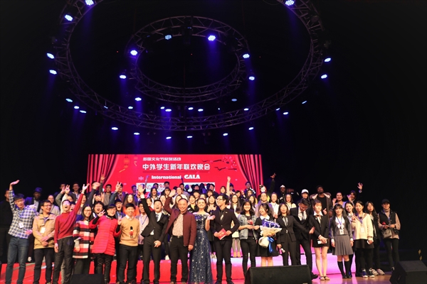 和学校社团的友情参演。晚会以炫酷的灯光和激情燃燃烧的街舞开场;留学生带来的面具舞《fever》热力十足,魅力四射;中外学生用多国语言演绎别样的《告白气球》集多种表演形式于一体,温暖而又动听的歌声伴着曼妙的舞蹈,将观众拉进浪漫温馨的氛围,演绎出了同学们的告白心声;中韩深情对唱《If you》让人身临其境,迷之荡漾;“梦行浙江”参赛舞蹈《荷塘月色》以其轻盈优美的舞姿吸引了观众的眼球,将中国传统江南水乡柔情完美地呈现给观众;古典舞《卷珠帘》、方言朗诵+歌曲联袂《滑板鞋》、二胡重奏《神秘园》、创意荧光舞台剧、花样轮滑等中外学生节目演出赢得了在场观众的阵阵掌声;来自非洲多个国家留学生和中国学来的舞蹈《winners》将晚会气氛推向了另一个高潮。晚会最后以全体学生演唱《Happy new year》圆满结束。此外,晚会还精心安排了抽奖环节。