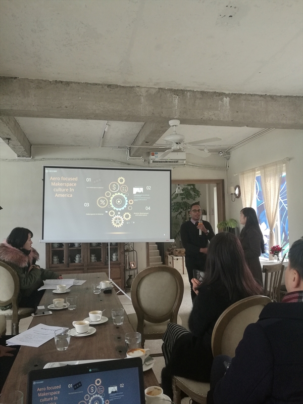 随后,Eli(飞行英语教官)和大家分享了Maker space in America(美国创客空间)的发展情况和aviation and maker space culture(航空创客空间文化)。兴龙航空副总桂峰介绍了公司的发展由来和运营情况,兴龙目前拥有5架飞机(直升机),两个运行基地,一是在江心屿江心西园,二是在福建三明沙县机场。他表示,“在温州,兴龙主要做娱乐项目,通过通用飞机让人们体验飞行乐趣,转变生活方式,体验到通用航空到底好在什么地方。”