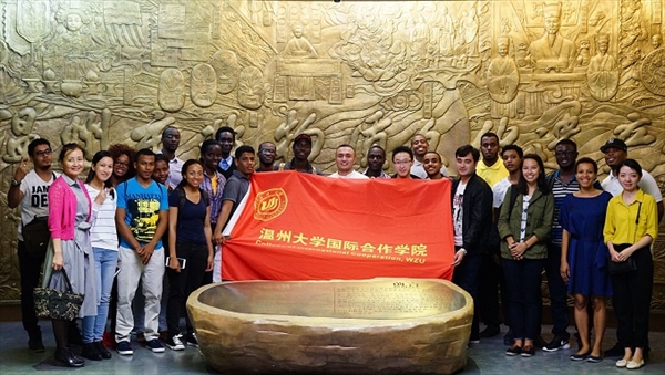 2016级留学生新生走进了温州市非物质文化遗产馆,深度体验温州民俗文化。此次参观的留学生来自荷兰、马来西亚、喀麦隆、乌兹别克斯坦、津巴布韦等10多个国家,该批留学生专程来五楼自拍