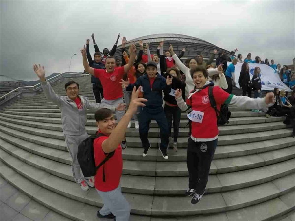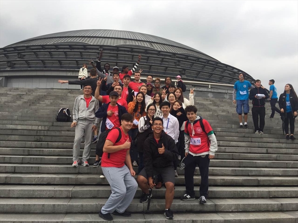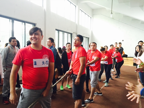 留学生的活力风采。开幕式后,立即进入了定点投篮和60米迎面接力跑的比赛。留学生们精神饱满、信心百倍、努力拼搏,最终取得了定点投篮第四名的成绩。下午是集体跳绳和拔河比赛。在集体跳绳比赛中,五楼自拍