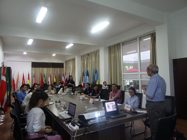 邓守信教授介绍了对外汉语教学过程中语法点的界定、困难度、排序及语法点描述。他认为:汉语的语法点描述应该涵盖三方面的内容:功能、结构、用法;并结合台湾最新出版的教材《当代中文课程》的编写理念与大家分享他五楼自拍教学方面的经验。他提出了对外汉语教学应该遵循的几大原则:累积性原则、针对性原则、零教学。指出在对外汉语教学领域语中,语法教学应根据学习者的母语特点、学习背景、学习目标等来进行语法点的描述、调整顺序。