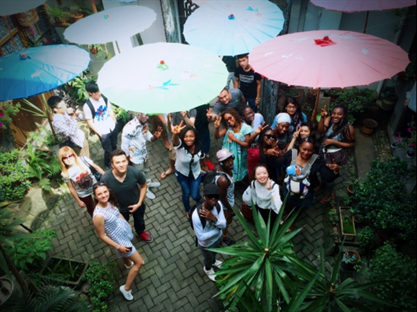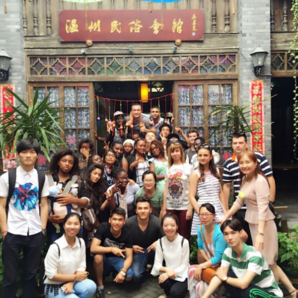 6月6日下午,温州朔门街区的七枫巷里迎来了一群“洋学生”。来自德国、苏丹、乌兹别克斯坦、韩国、喀麦隆等国家的近30名温大留学生汇集在温州民俗文化会馆,留学生们在这古色古香的江南古民居内,感受着“吱嘎”响的门板、精致的雕花窗和厚重的青石砖,以及屋室里主人从各地“淘”来的旧式家具,仿佛穿越回了百年前的温州。会馆女主人潘女士热情向来自五湖四海的“洋学生”介绍会馆中件件珍品背后的故事:“门当”和“户对”;民国时期的木柜;设计别致的梨木雕花床,还有挂在门上的温州特色的蓝夹缬门帘。来自外语五楼自拍