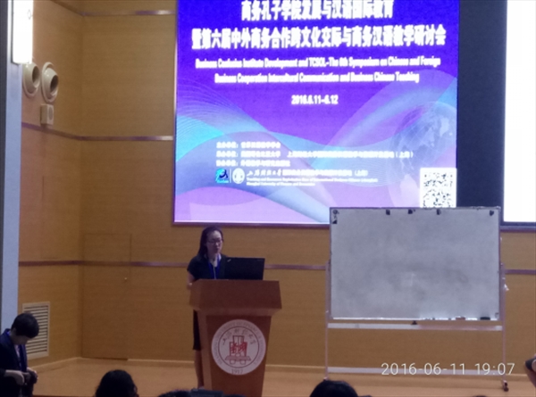 汉语国际推广教研室郑婷、金碧两位教师应邀参加“第六届中外商务合作跨文化交际与商务汉语教学”研讨会。此次研讨会由世界汉语学会主办、美国哥伦比亚和上海财经大学承办,邀请了10多位国内外知名专家,共有100余位代表参加。