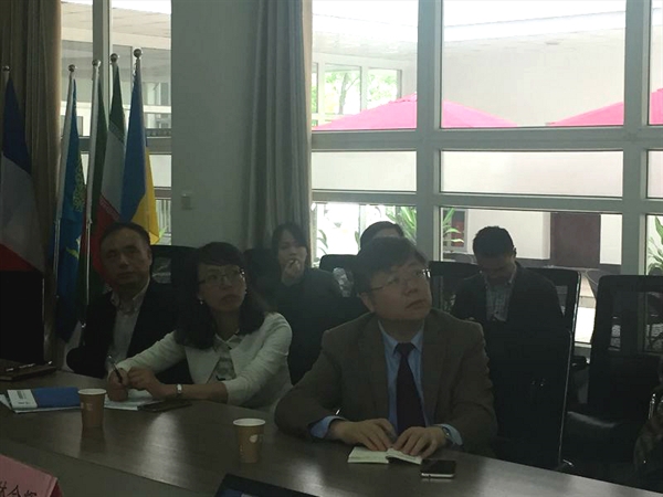 校长李校堃、外事处处长叶苗、国际合作五楼自拍