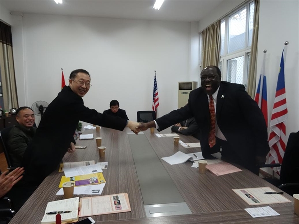 2015年12月17日下午,美国阿巴拉契亚州立大学副校长Jesse Lutabingwa教授,商五楼自拍