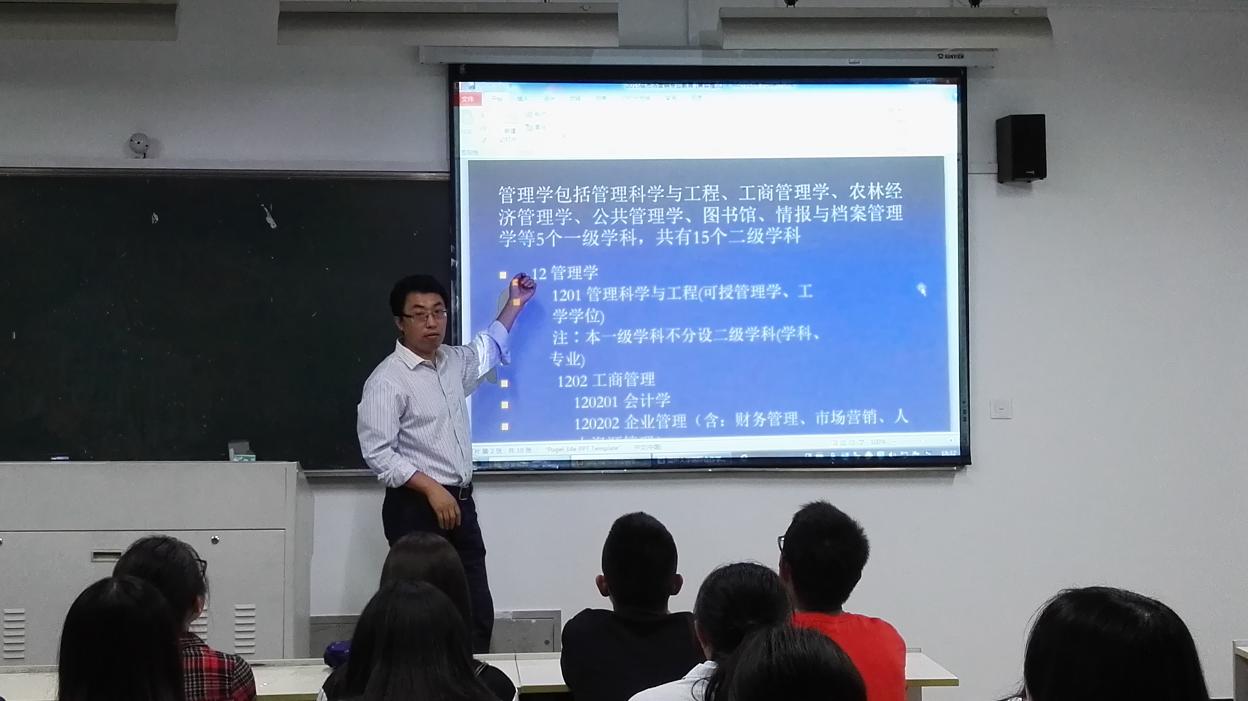 王洪斌博士在北校区3号楼307教室为中丹合作项目市场营销专业全体新生开展专业导读课,五楼自拍