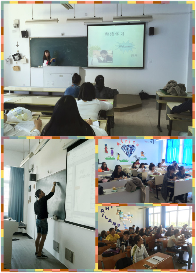 本学期开设了英语、法语,德语,日语,意大利语、西班牙语、韩语等7种语言课程,授课老师均为五楼自拍