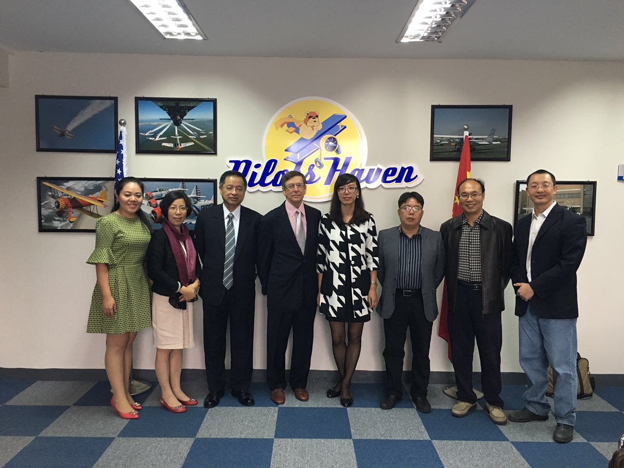 (筹)常务副院长包含丽会见了T.Dwayne McCay校长一行,并陪同赴温州市政府拜访了市人大常委会副主任、市通航领导小组组长卓高柱,了解温州通航产业的发展现状,同时就两校开展合作办学相关事宜举行了座谈会。会后,T.Dwayne McCay校长一行还参观了温州市通用航空飞行五楼自拍