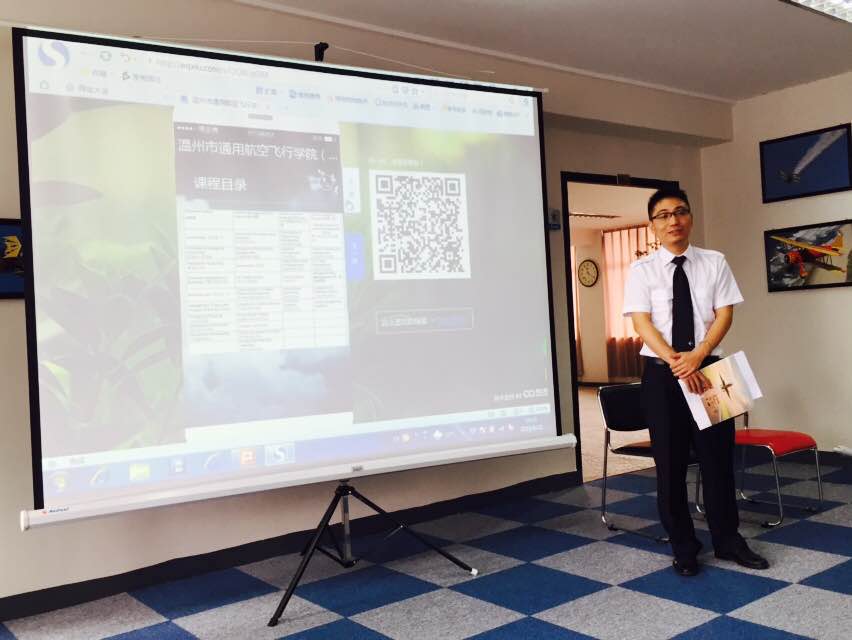 图为FAA地面教官苏中元介绍赴美学习课程情况