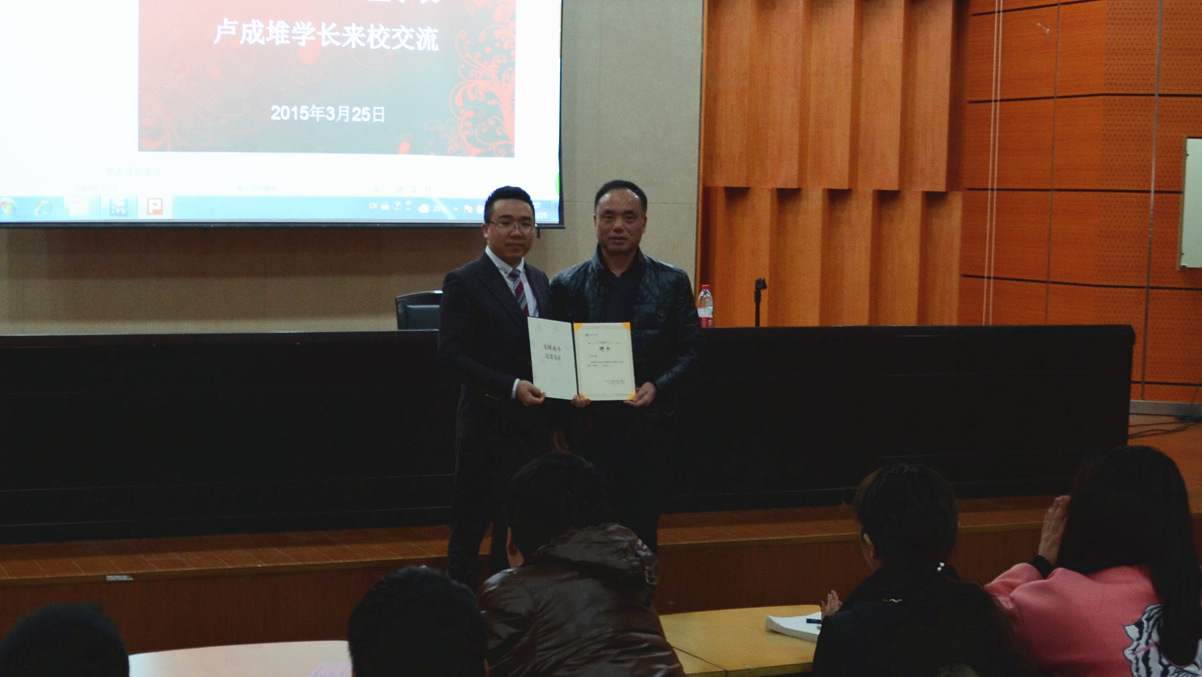 党总支书记朱建平出席此次活动,并向卢成堆先生颁发了院创业指导师证书。