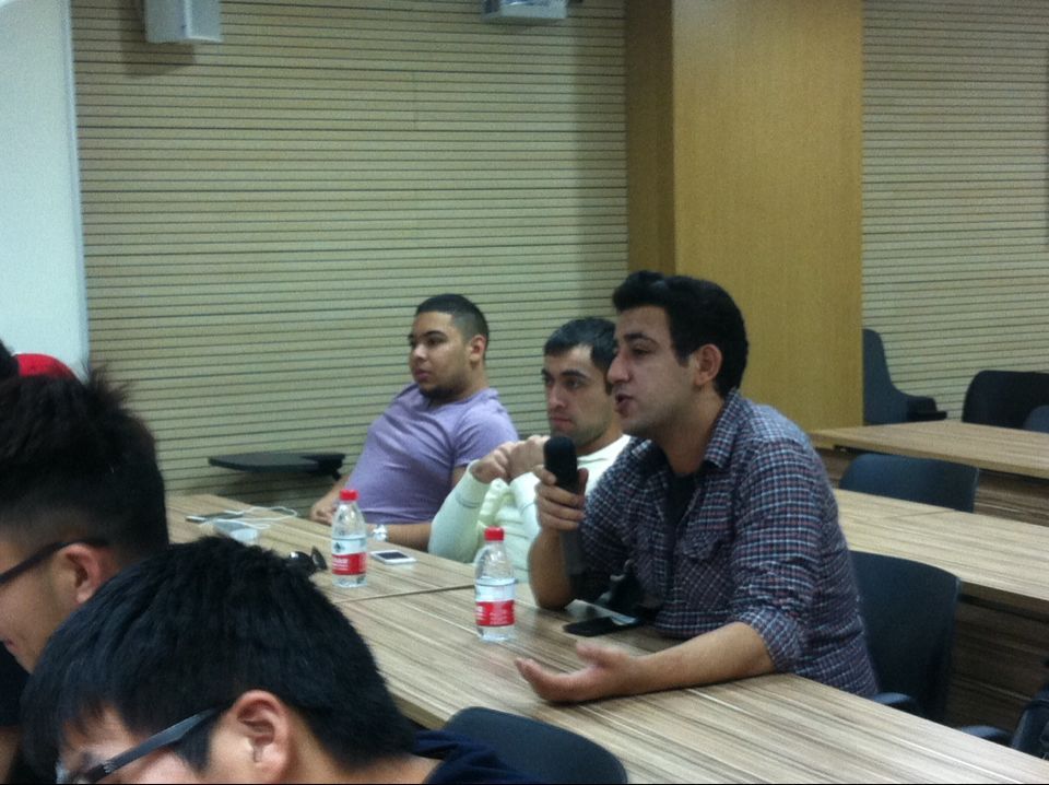 中外学生认真聆听自贸区介绍