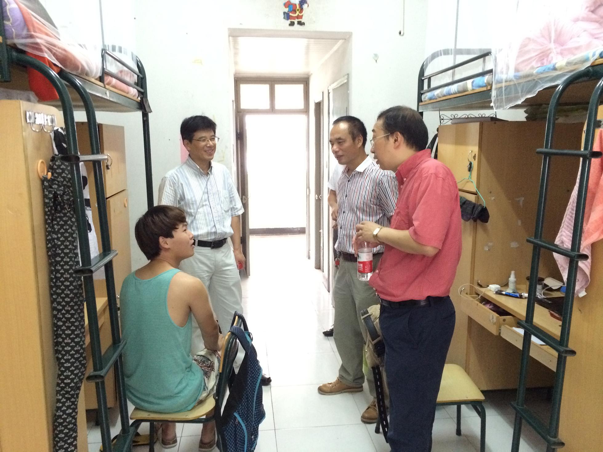 与学区协同合作、联系机制、寝室导师、迎新准备等问题互相交换意见。随后,严晓鹏一行来到中丹合作办学项目学生宿舍看望学生。到了毕业班学生宿舍时还与多名毕业班同学探讨了实习、就业、考研、出国深造等准备过程中的一些具体问题,如场对一位欲前往英国就读硕士学生的申请资料提出了修改意见。在走访超豪后,严晓鹏一行又前往溯初学区,同样先是拜访学区领导,然后是看望两岸合作办学项目的学生。院领导们希望同学们返校后能尽快地把注意力集中到学习上来,恢复学习状态,并嘱咐他们要认真做好学年规划,加强学业交流、开展互帮互助活动,营造奋发向上、团结友爱的班级宿舍氛围,争创优良学风班级、优良学风宿舍,争当优良学风个人;新学年要有新气象,要出新成绩。