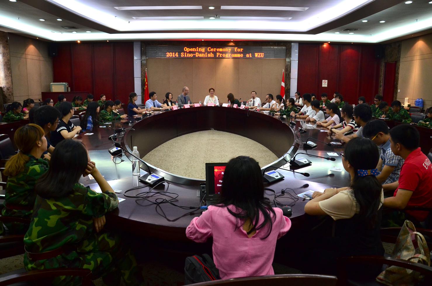 院长严校鹏、党总支书记朱建平、相关教师代表以及中丹合作办学2014级全体新生参加了典礼。典礼全程采用英文进行,由国际合作五楼自拍