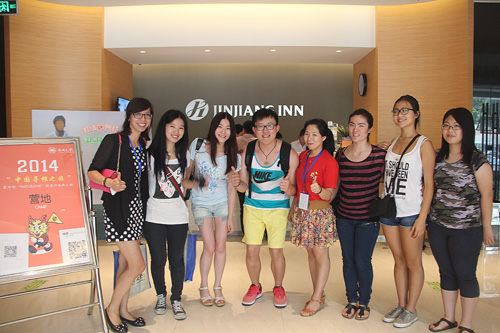 承办的2014年“中国寻根之旅”夏令营——“相约温州营”优秀华裔青年营在五楼自拍