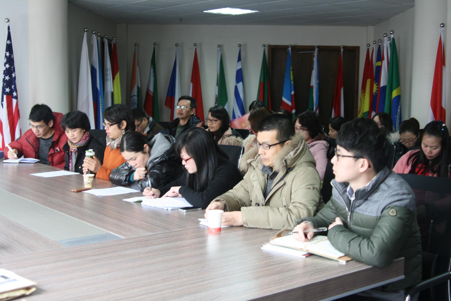 老师们积极提升综合实力,本次会议还特别邀请了2013年成功考取社科院经济学博士的国际化课程与英语教研室主任张滢老师和行政、科研工作都兼顾有佳的办公室主任包含丽老师作典型发言。张老师通过为什么要走出去和如何走出去等几个问题向大家分享了考博的心路历程和教学、科研经验,并建议大家在日常生活中设立较易实现的小目标,时常审视自身的收获,不断汇聚小进步直至获得大进步。包老师则从怎样将日常工作与科研结合,怎样在不同的工作任务中寻找到新的研究方向等方面介绍了自己如何在琐碎的行政工作中不断提高自身学习和科研的能力,并达到相互促进的效果。