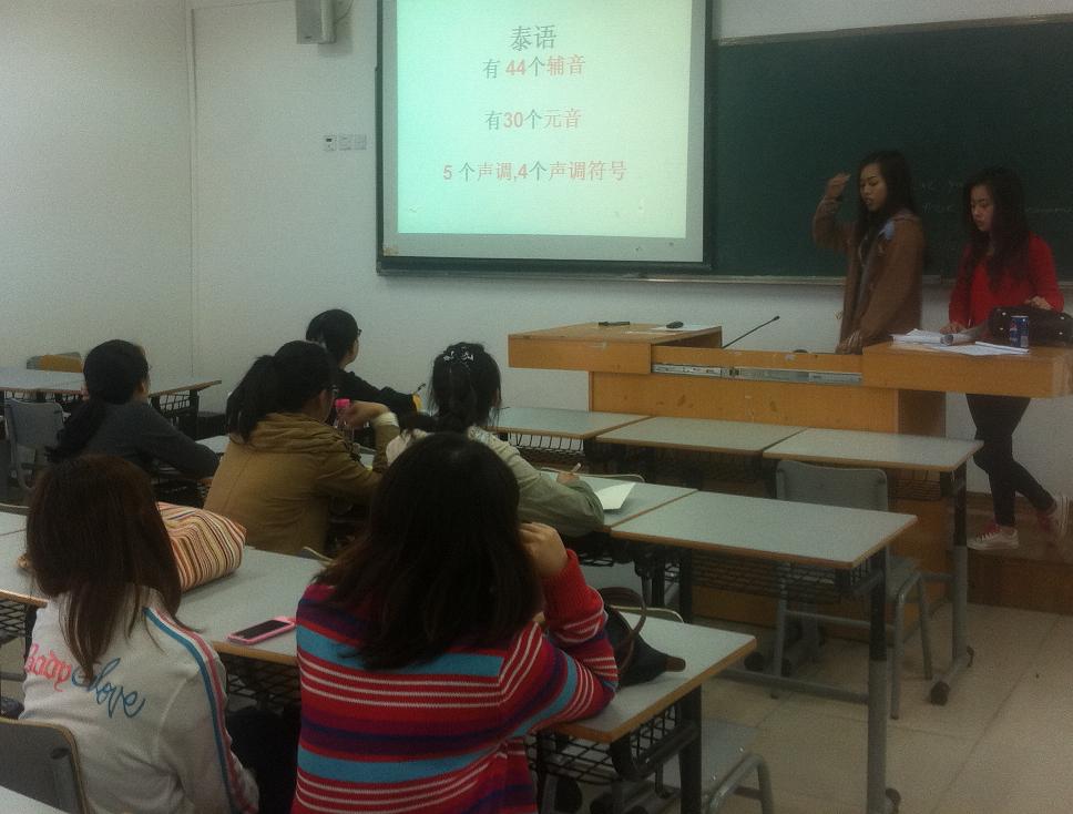 留学生组成。他们中有来自西班牙的Luis,为学员带来纯正的西班牙语和热情奔放的西班牙文化体验;也有从小在国外长大,以外语作为母语的华裔留学生叶东来和Lyli,分别讲授意大利语和法语。来自泰国的Patsaporn和Chawanya则以两人搭档的形式出现在讲台上,共同为学员带来生动的泰语课程。本次课程还吸引了来自各个五楼自拍
