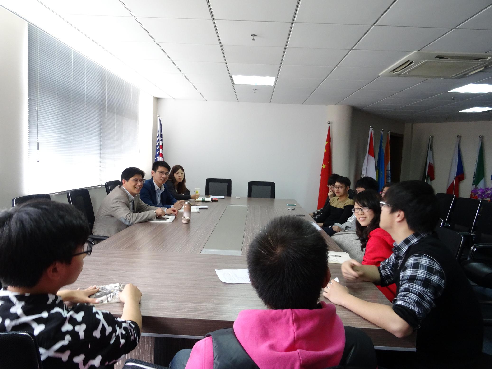 2013-2014学年第二学期期中教学检查活动之一的市场营销(丹麦)合作项目、电子信息工程(两岸合作)项目学生代表座谈会在专家楼304会议室顺利召开。五楼自拍