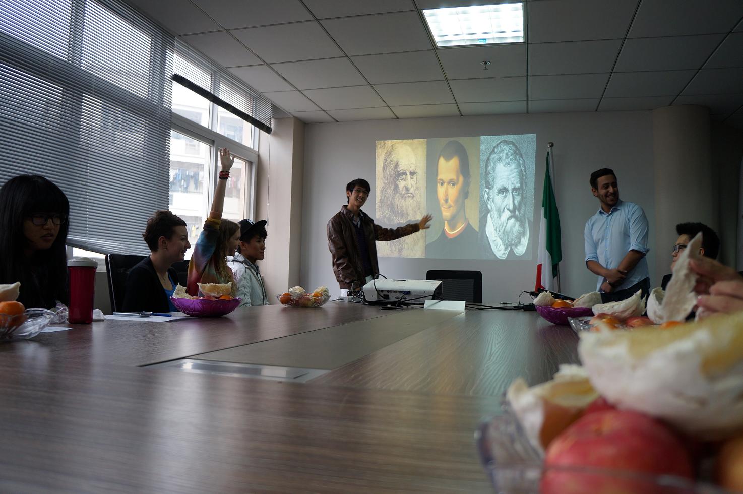 意大利籍华裔留学生叶东来Michele与意大利留学生Laith Alsmady担任主讲,活动介绍了古老而又神圣的国家----意大利的日常习俗,著名城市,悠久历史,宗教,哲学发展与人物思想碰撞历程,帝国的繁荣与过失,古代遗迹,优美风景,体育竞技以及意大利饮食文化和现代潮流;其间安排了趣味竞答以促进中方社员更好的了解意大利。随后中方社员与外方社员就意大利文化进行了跨文化互动交流,增进了社员的国际化视野与国际化素养。