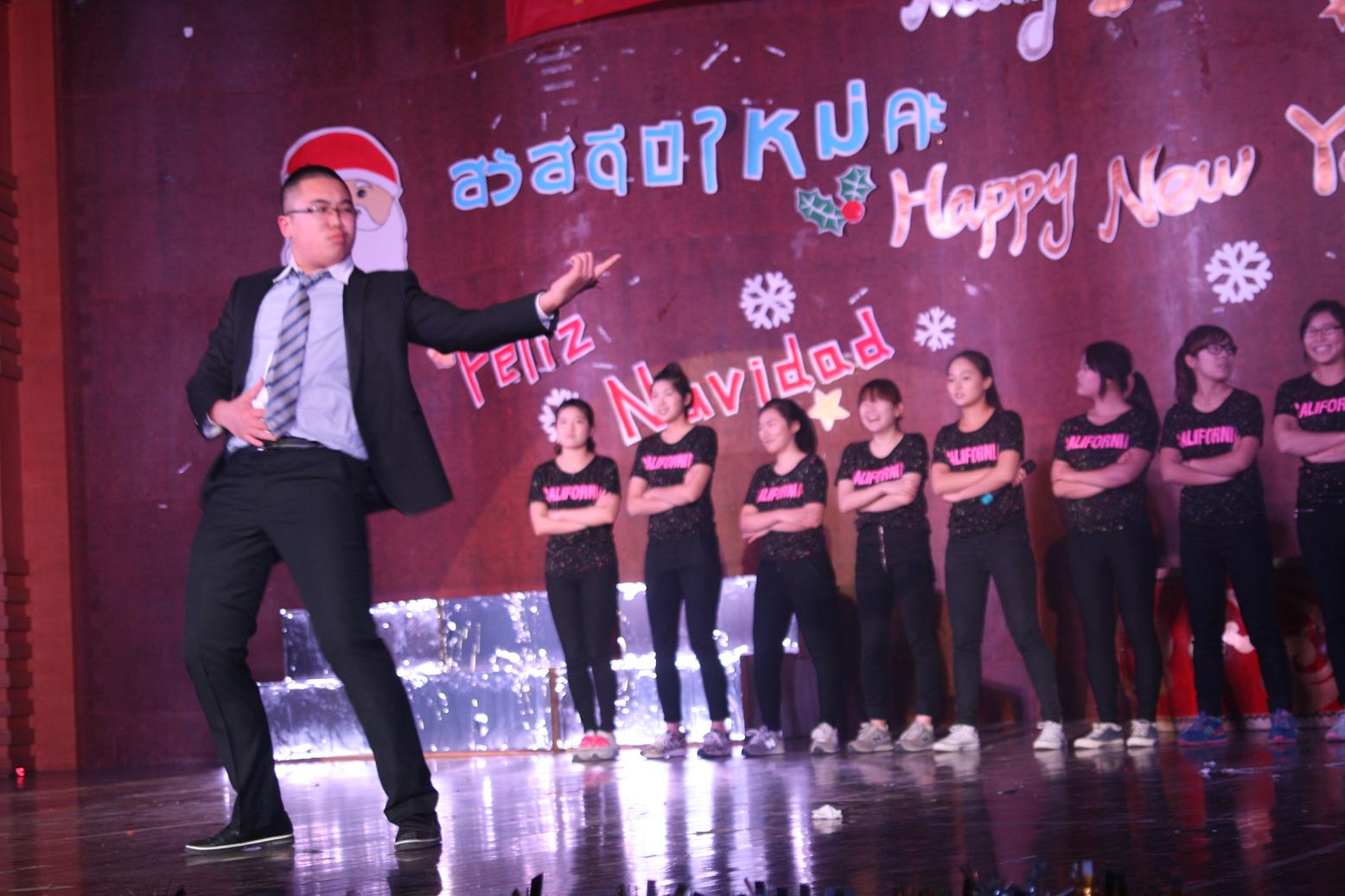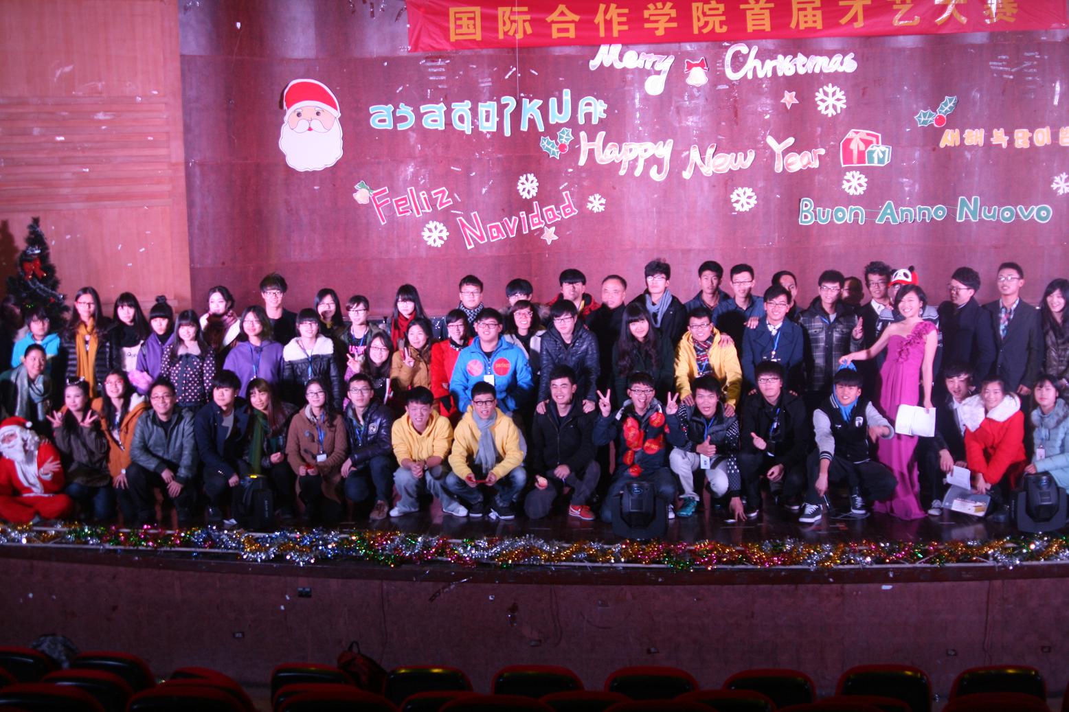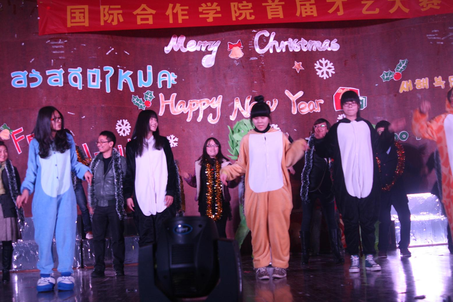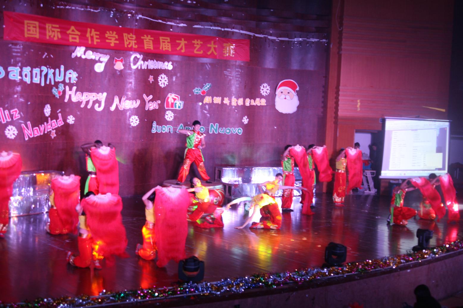 留学生表演的中国味十足的开场舞《龙腾虎跃》中拉开了序幕,由13级中丹1班同学选送的情景剧《在茶山约会吧》改编自时下流行的相亲节目,他们惟妙惟肖的演绎,令全场观众笑声不断;13级中丹2班的合唱曲目《二班去哪儿》 则是改编自当下最流行的亲子节目《爸爸去哪儿》,让现场气氛显得格外融洽;多国文化小展《欢乐的旅行》和舞蹈《tik tok kesha》看得大家如痴如醉;相声表演《李领导》不仅地道,更是韵味十足;由老师和学生联袂出演的舞台走秀《圣诞show》把才艺大赛推向了高潮。晚会节目精彩纷呈,创意无限,中西结合,颇具国际范。