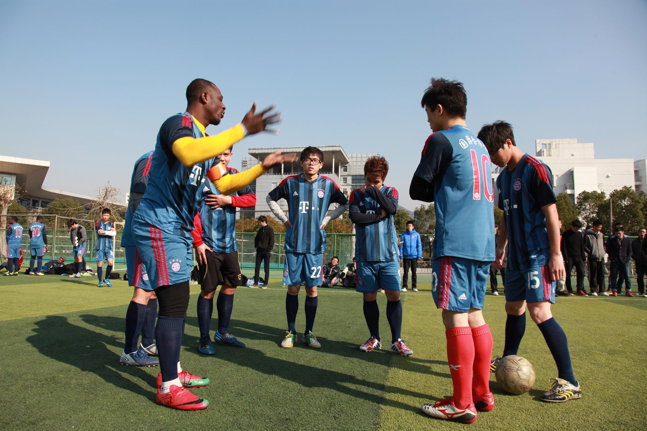 中外学生组成的足球队克服种种困难,勇敢迎战强敌,虽然最终在决赛中遗憾地输给了对手,但他们在赛场下刻苦训练,在赛场上奋力拼搏的精神还是值得尊敬。值得一提的是,不同肤色、不同国籍的学生参与比赛,为足球挥洒激情,既是球艺的切磋,也是友谊的交融,对促进五楼自拍
