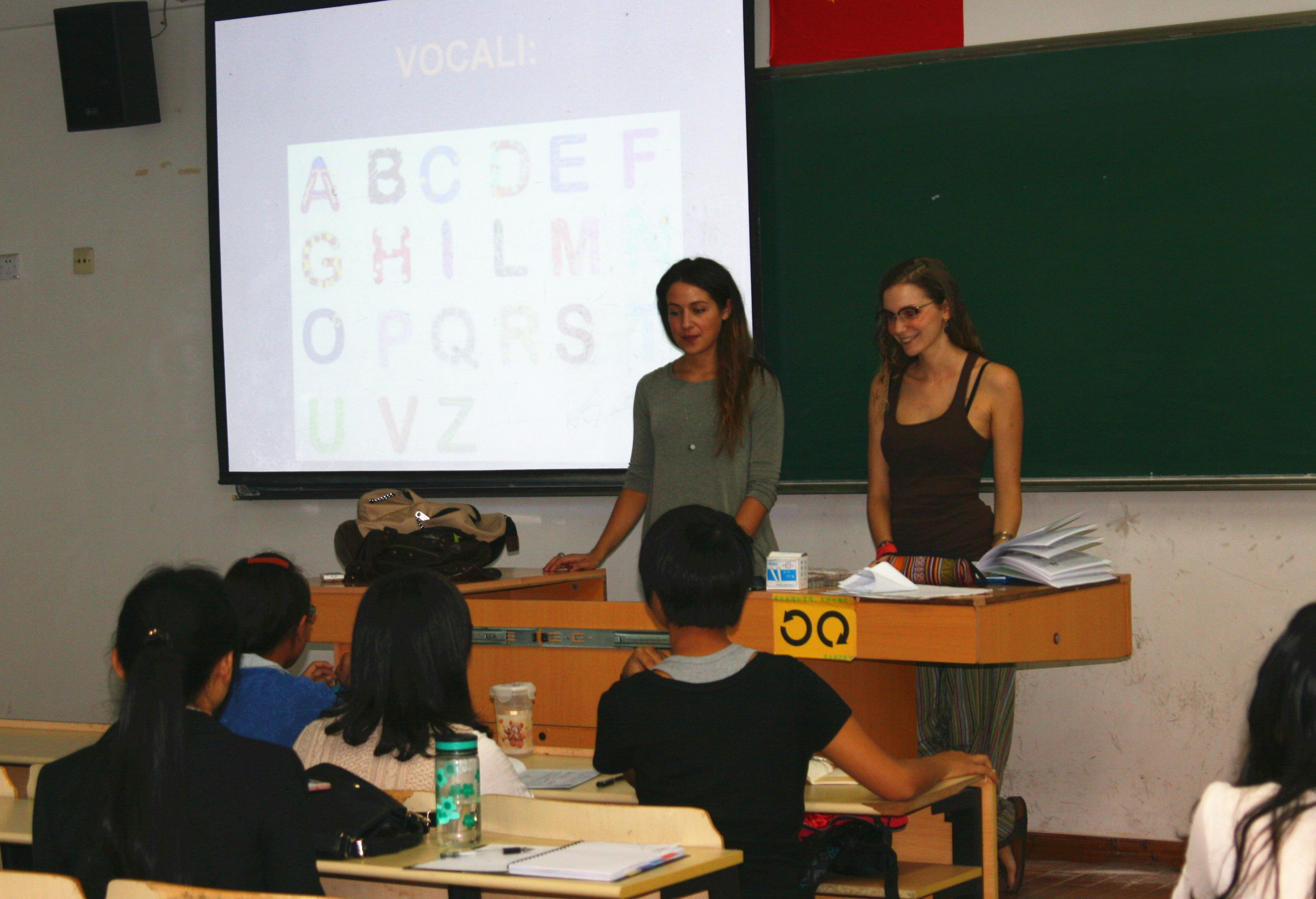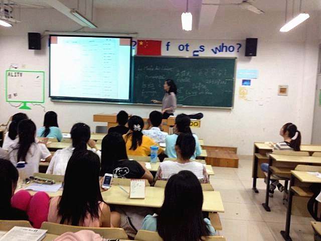 主办,国际文化交流社承办的多国语言推广中心正式开课。本期开设意大利语班,西班牙语班,法语班,泰语班和英语班。国际合作五楼自拍
