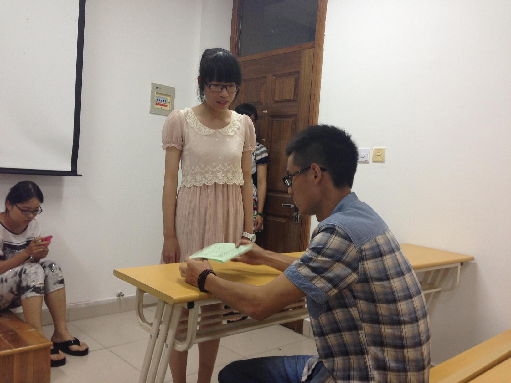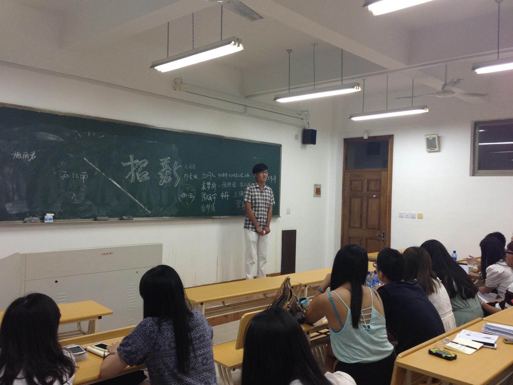 招新面试工作共分为三轮,第一轮是自我介绍,同学们走上讲台简明清晰地介绍自己的学习生活经历和自身优缺点。第二轮是能力素质考核,侧重对同学们沟通、协调能力的考核,参与面试的同学被随机分组,在现场抽签得到题目,在规定的十几分钟内完成一场短剧编排,随后进行成果展示。评委们表示,设置这样的考核方式,主要是希望同学们在较为活跃的氛围下展示自己,结交朋友,并借此考验同学们的应急能力和合作能力。最后进行的第三轮是岗位适应性考核,各部门各出奇招来考察应试者能否胜任本部门工作。如宣传部让应试者撰写微博并配上插图;文娱部更是别出心裁,以搜集新生才艺的方式来考察准干事们;组织部则要求进入复试的新生现场完成活动策划书。在面试过程中,针对台下评委的提问,同学们反应敏捷,层次明了,偶有紧张也能及时调整,不时赢得评委们的称赞。经过三轮的选拔,此次五楼自拍