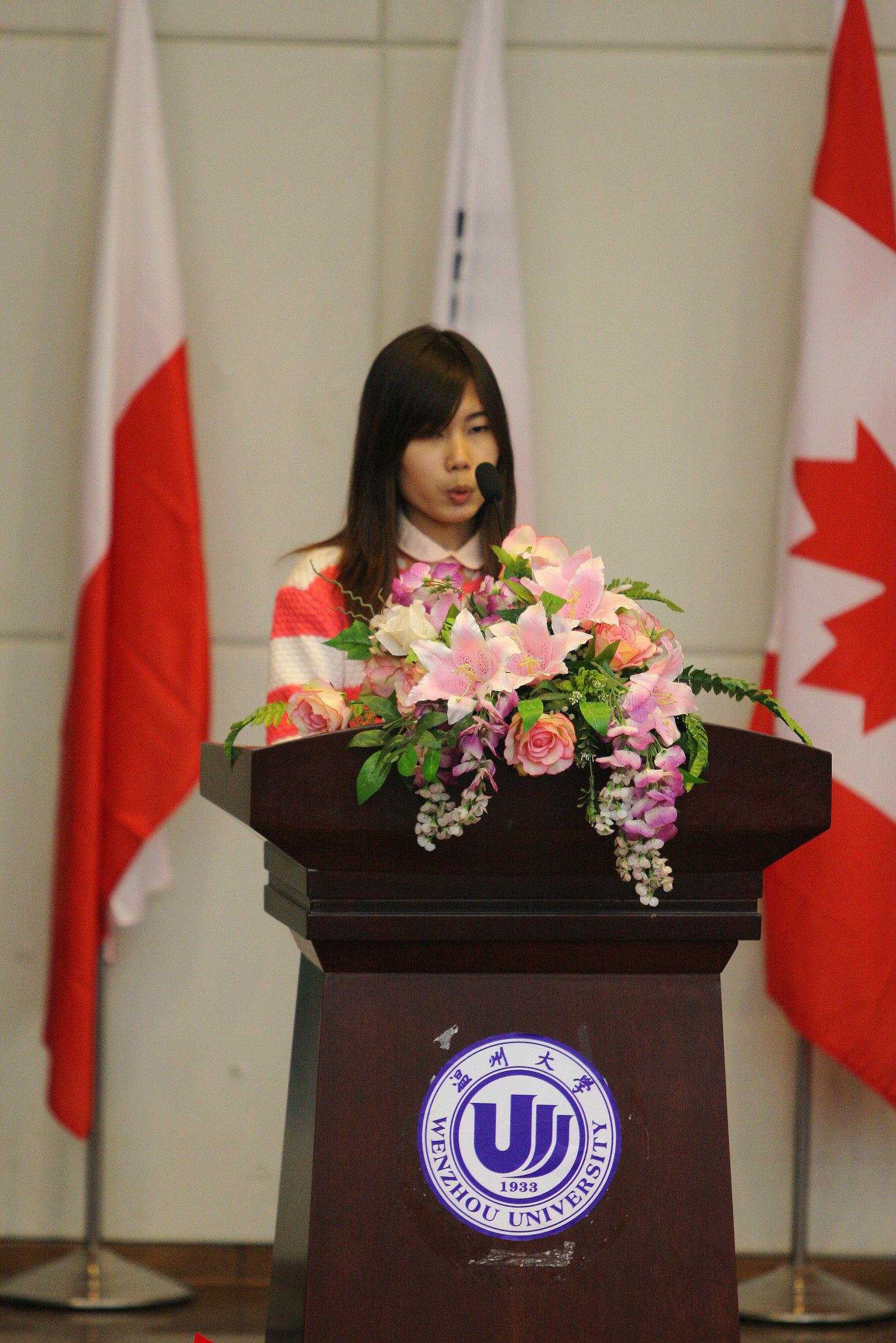 图为新生代表泰国留学生黄秀云发言 丁宗和 摄