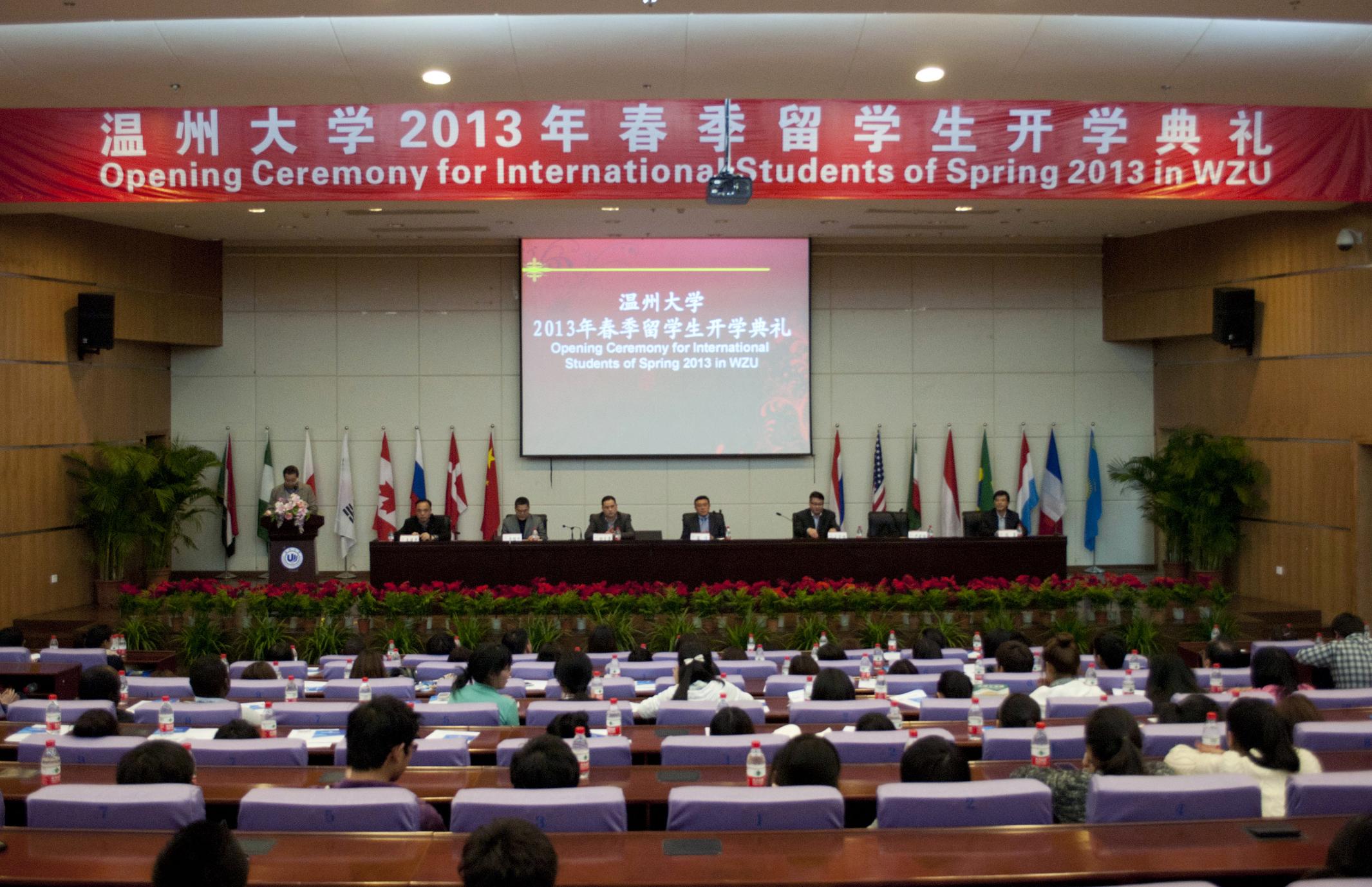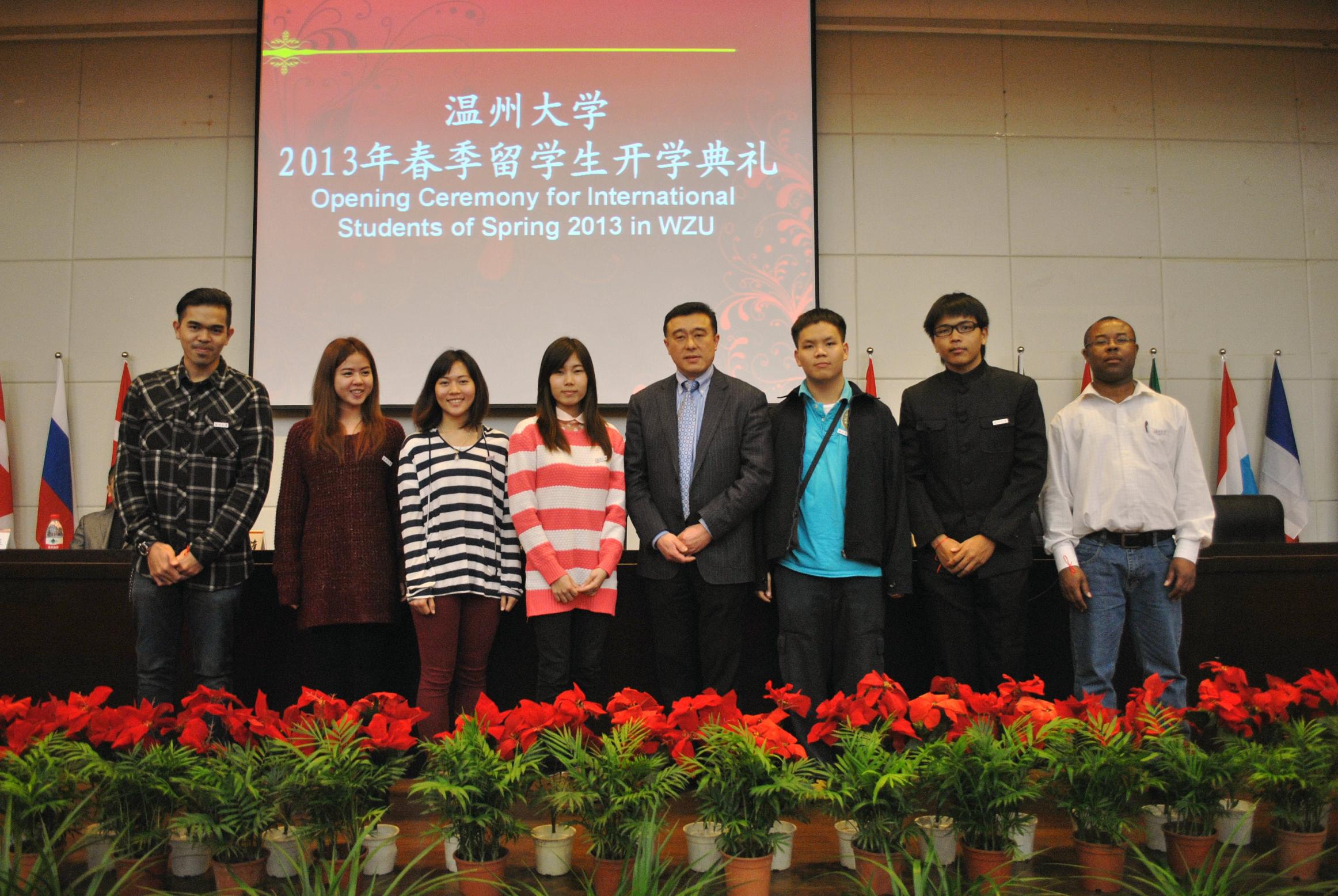 2013年春季留学生开学典礼在育英图书馆报告厅隆重举行。副校长薛伟,教务处、学生处、团委等相关部门负责人参加了典礼。典礼由国际合作五楼自拍