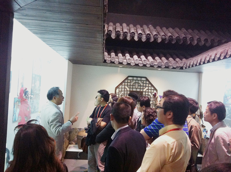 发绣馆,近距离接触发绣这一温州著名的特色传统工艺,发绣馆的魏乐文老师为来宾们详细讲解了发绣的发展历史,介绍了作为国宾礼的精美发绣作品。在随后参观的温州民俗博物馆,有“民间工艺美术家”之称的赖施虬馆长亲自担当讲解员,为来宾们生动展现了温州的民俗文化和民间艺术。