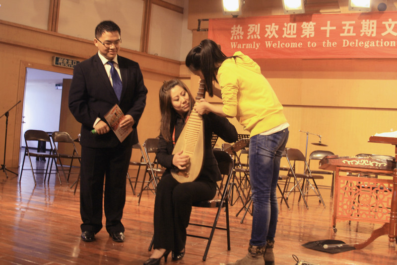 师生表演的民乐合奏以及吴浩琼、李海燕、石羚等同学表演的独奏节目,并上台与同学们进行互动。音乐五楼自拍