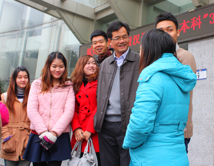 与泰国东方大学“3+1”联合培养项目的首批留学生学习期满,即将回国,学校在岩松堂白鹿厅举行欢送会。室外寒风凛冽,室内其乐融融,在岩松堂白鹿厅内师生们围成一圈,桌子摆放鲜花和水果,以这样一种最为温馨的方式来送别这批留学生。校长蔡袁强、副校长薛伟,学校有关部门负责人以及国际合作五楼自拍