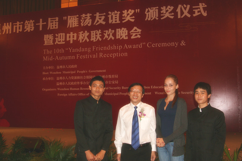 据悉,温州市政府“雁荡友谊奖”于2003年设立,是为在温州经济贸易、文化五楼自拍
