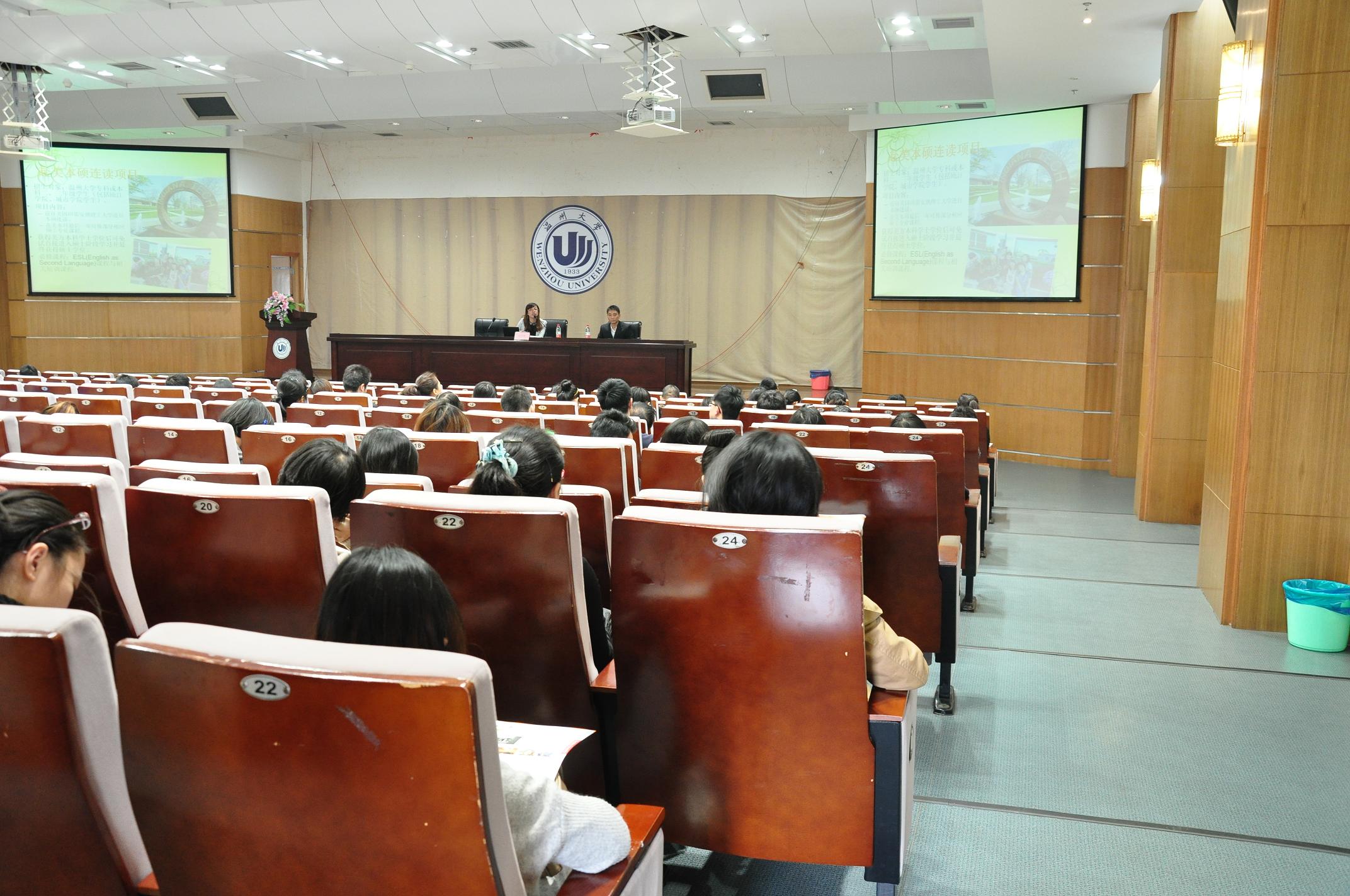 专题暨赴美留学项目说明会”。说明会由国际合作项目开发办公室主任、美国印第安纳访问学者包含丽老师主讲。
