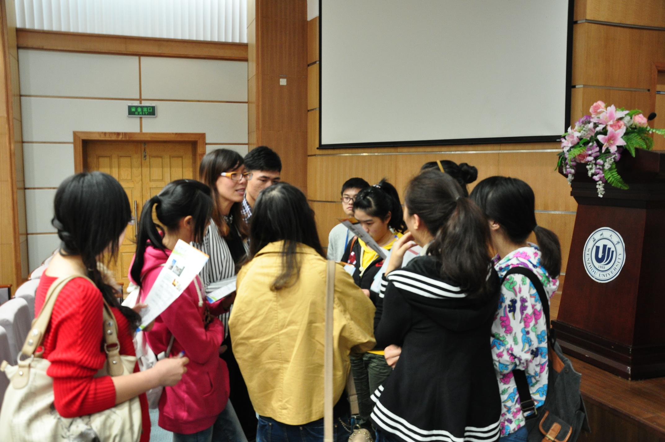 的差异,围绕高校录取、课堂教学、考核体系、教学管理、学习方式等方面客观地阐述了美国高校文化,并通过自身赴美访问期间的体验以及已赴美留学的学长生活学习感言,让参加说明会师生对赴美就读形成了初步的认识。之后,她详细介绍了2012年秋季五楼自拍