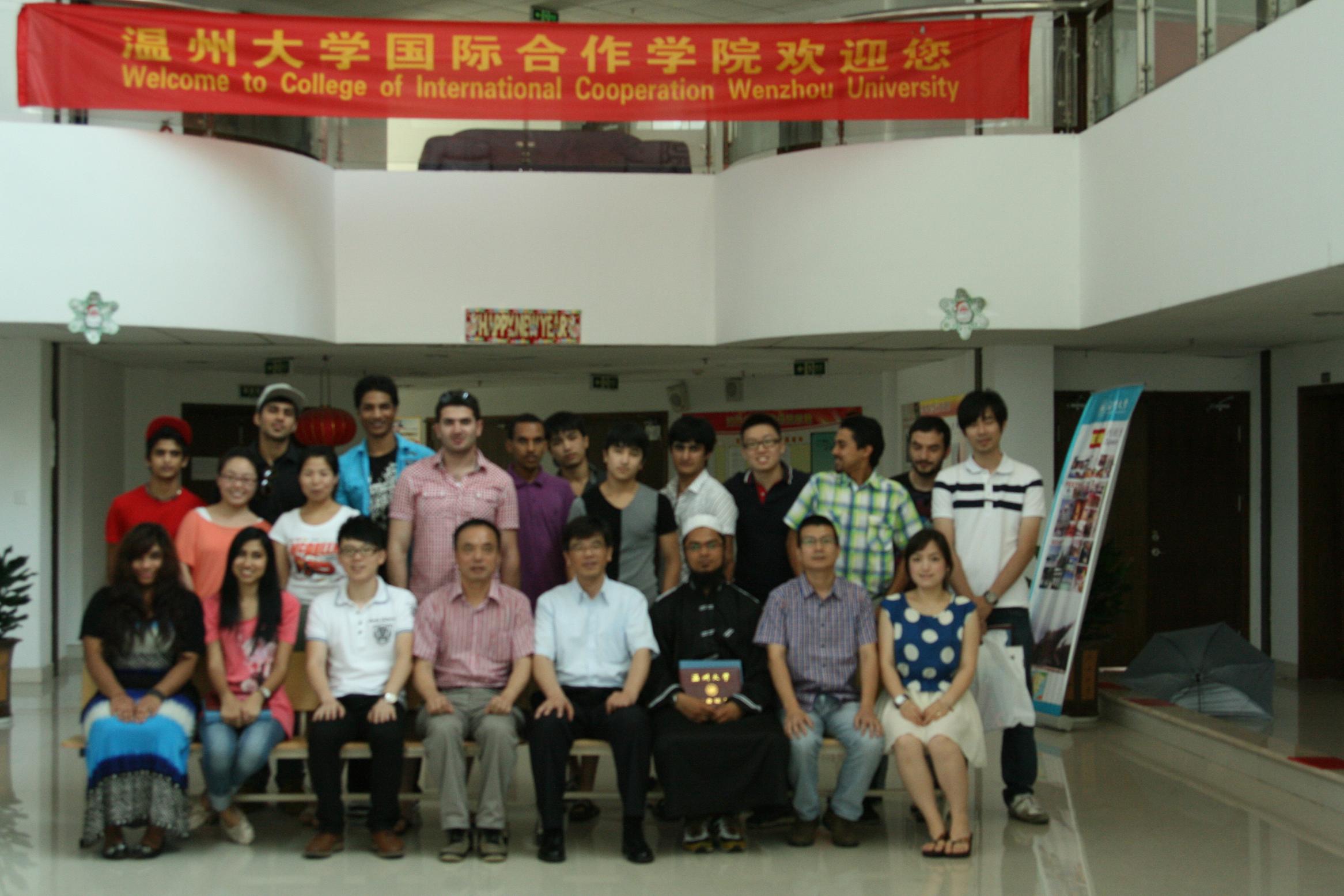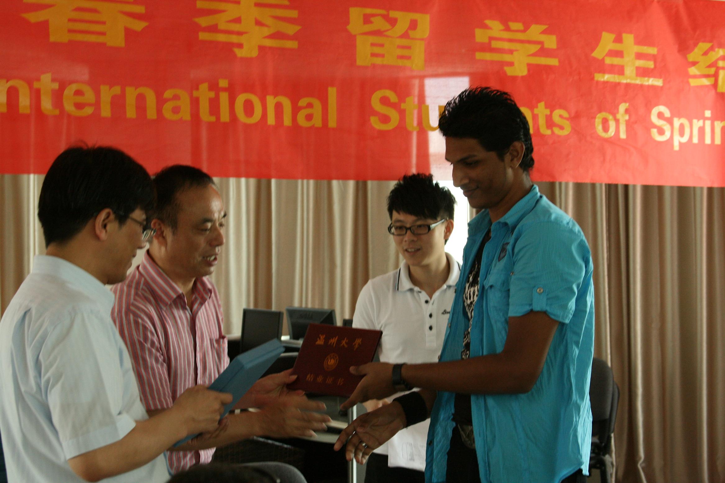 2012年春季留学生结业典礼在南校区专家楼举行,典礼由院党总支书记朱建平主持,副院长陈军出席并致辞,出席典礼的还有五楼自拍