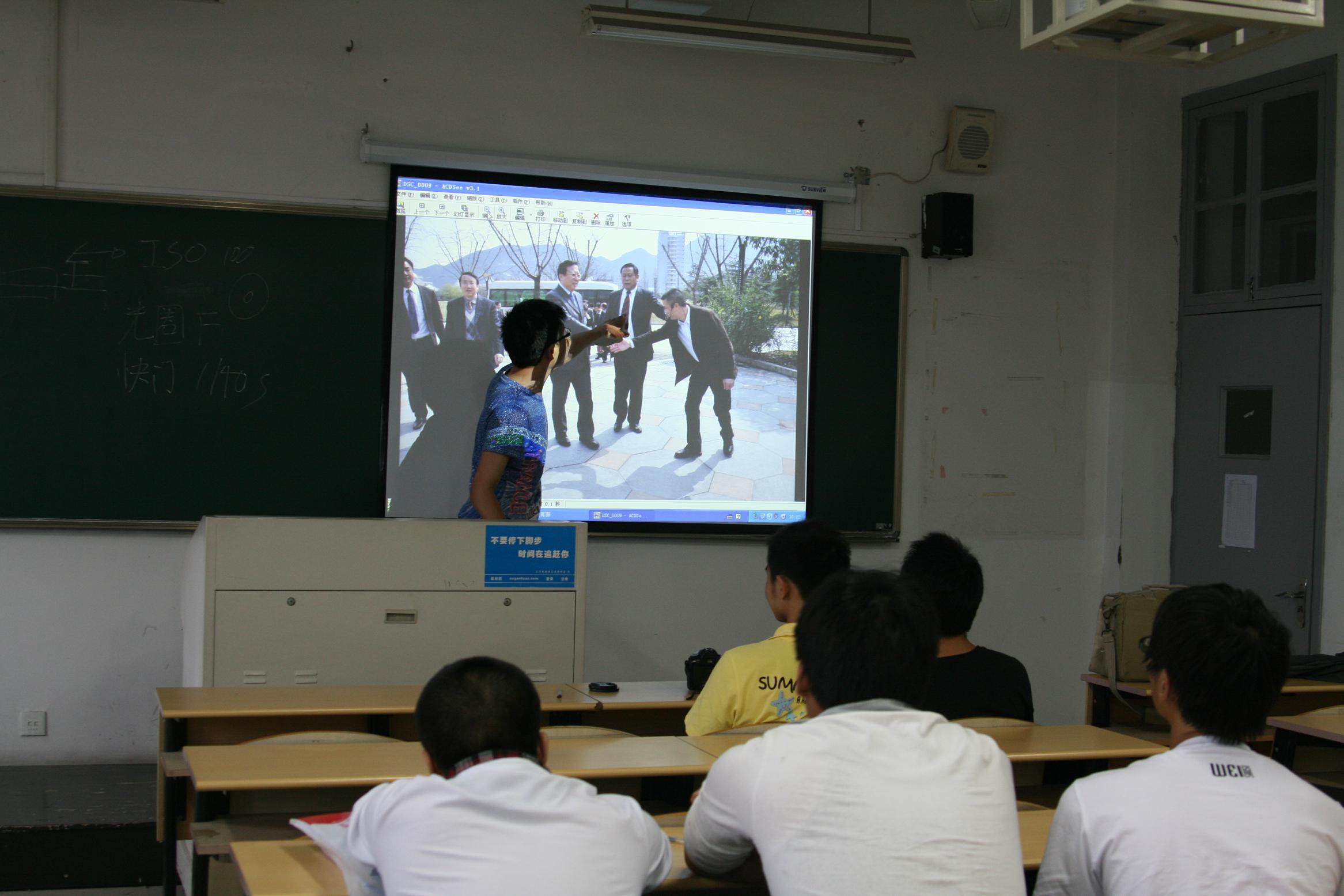 首先,杨涛同学讲解了五楼自拍单镜头反光相机的主要工作原理,以及最基本的例如快门时间、光圈、感光度的知识。接着,杨涛同学向同学们强调拍摄新闻照片的重要性,在拍摄新闻照片时,应注重质量、技巧而非数量。然后,他通过实例对比、现场演示向同学们详细地介绍了拍摄新闻照片的具体方法、拍摄技巧以及拍摄时应注意的问题等,并指出拍摄新闻照片时要以新闻主题、新闻人物、新闻事件等要素为主。最后,杨涛向同学们分享自己的拍摄心得以及自己的拍摄经验。