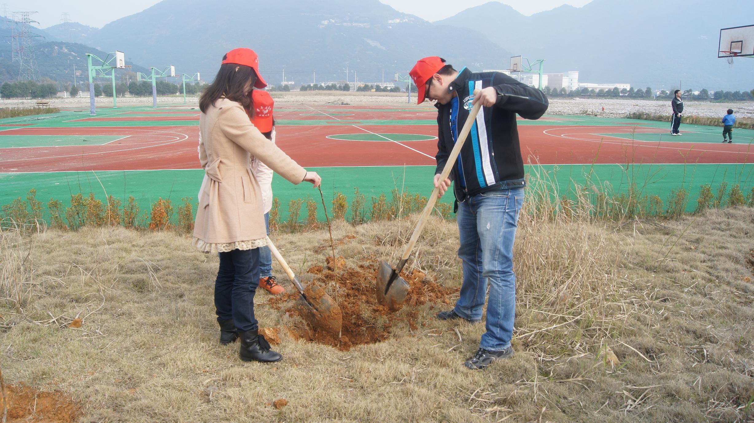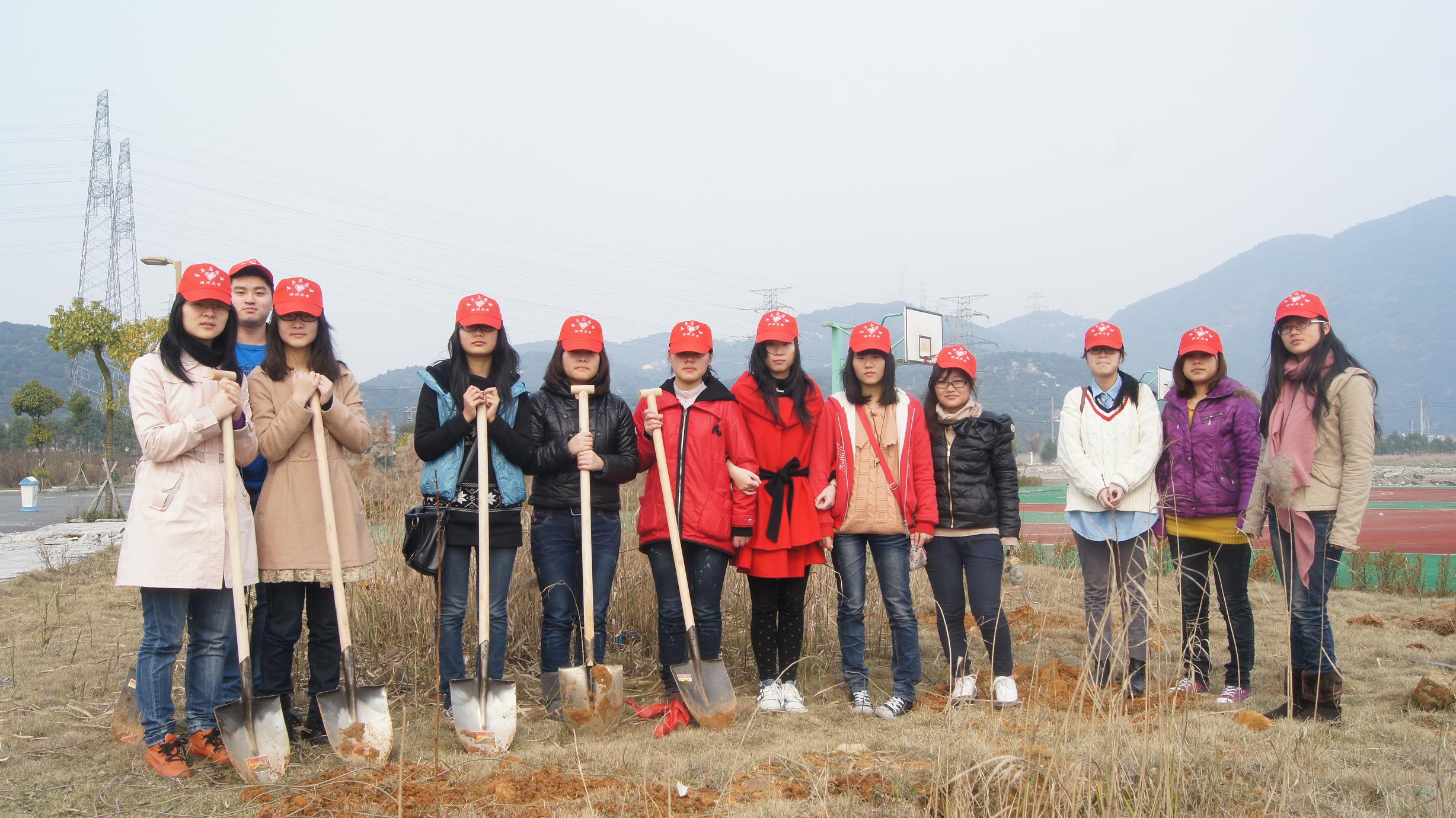 青年志愿者协会在北校区进行一次小规模的植树活动。