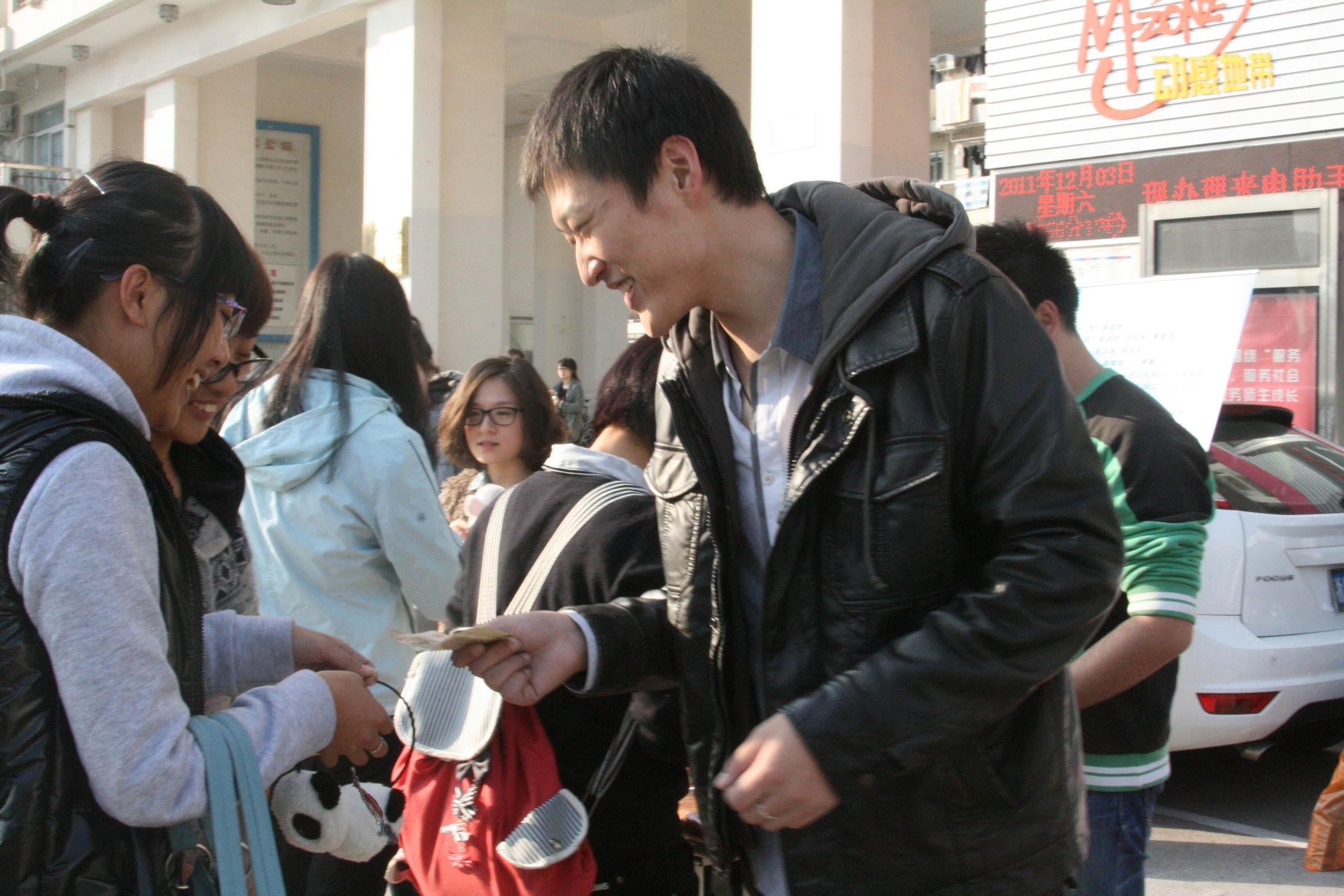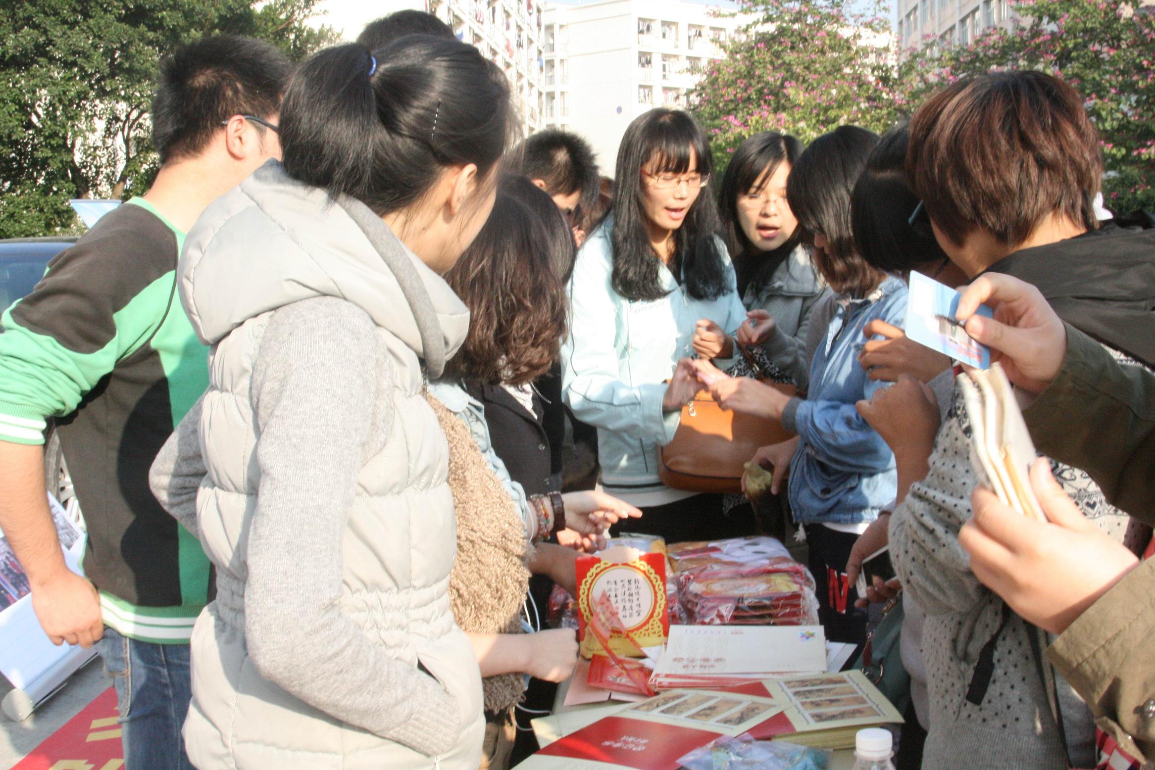 2011年义乌商贸体验队队员在A区生活区举办了义乌小商品校园义卖活动。