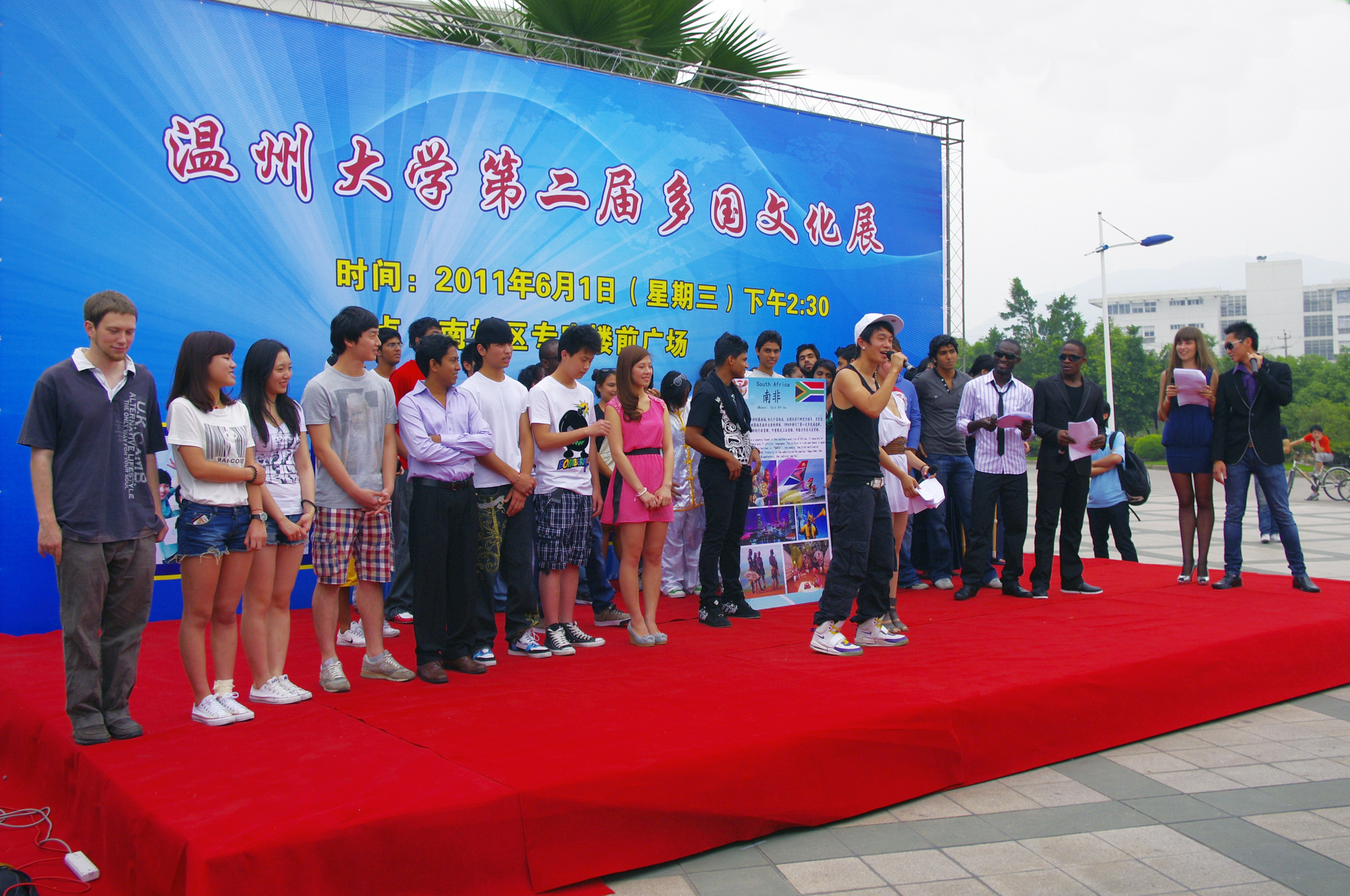 第二届多国文化展在南校区专家楼前举行。外事处、宣传部、校团委等部门的负责人和五楼自拍