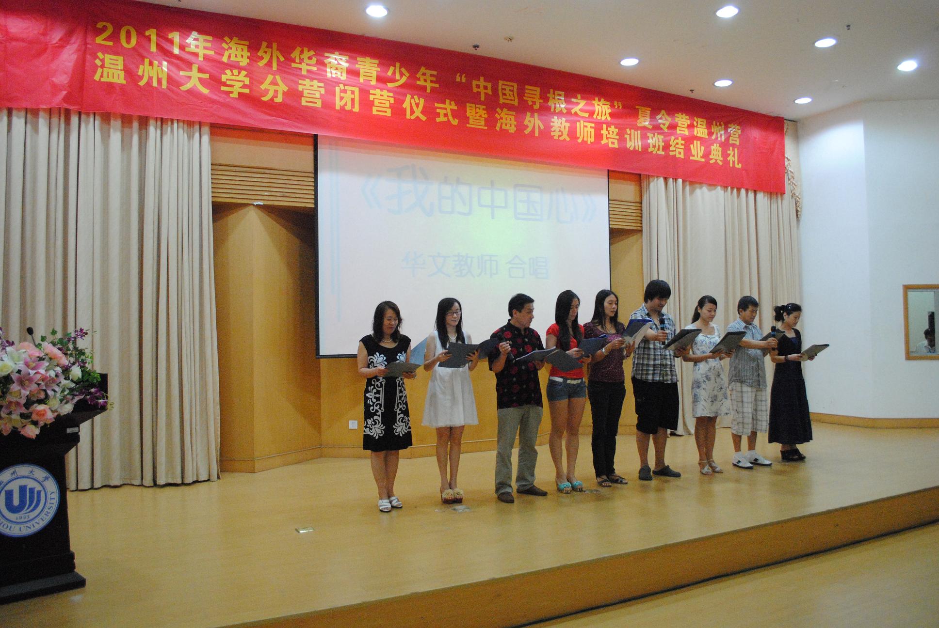 典礼上,海外华校教师合唱了一曲《我的中国心》,获得台下阵阵掌声。本期海外华校教师代表李潇濛在典礼上发言说:“此次培训活动之后,我会带着我在温州所收获到的知识和文化,以全新的姿态投入到汉语教学中来,让我们华裔子女们真真切切地感受我们祖国文化的博大精深,这样也能为华文五楼自拍