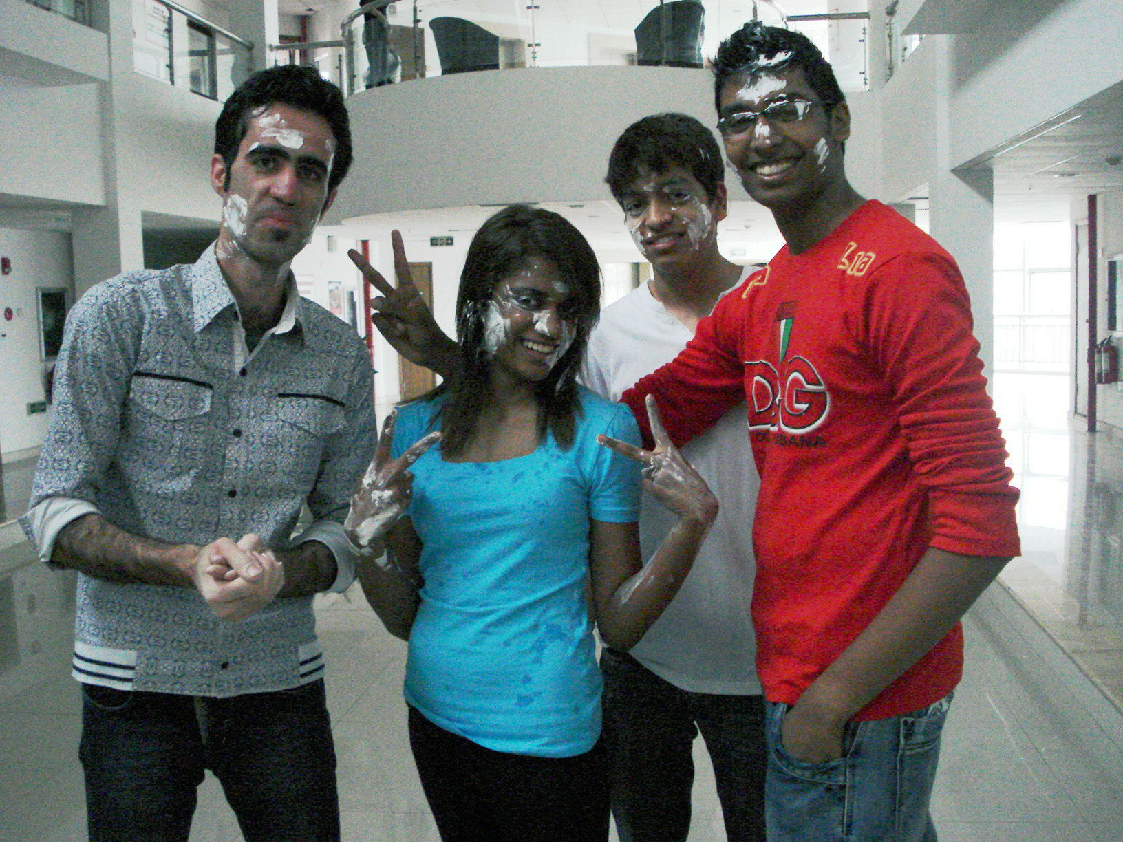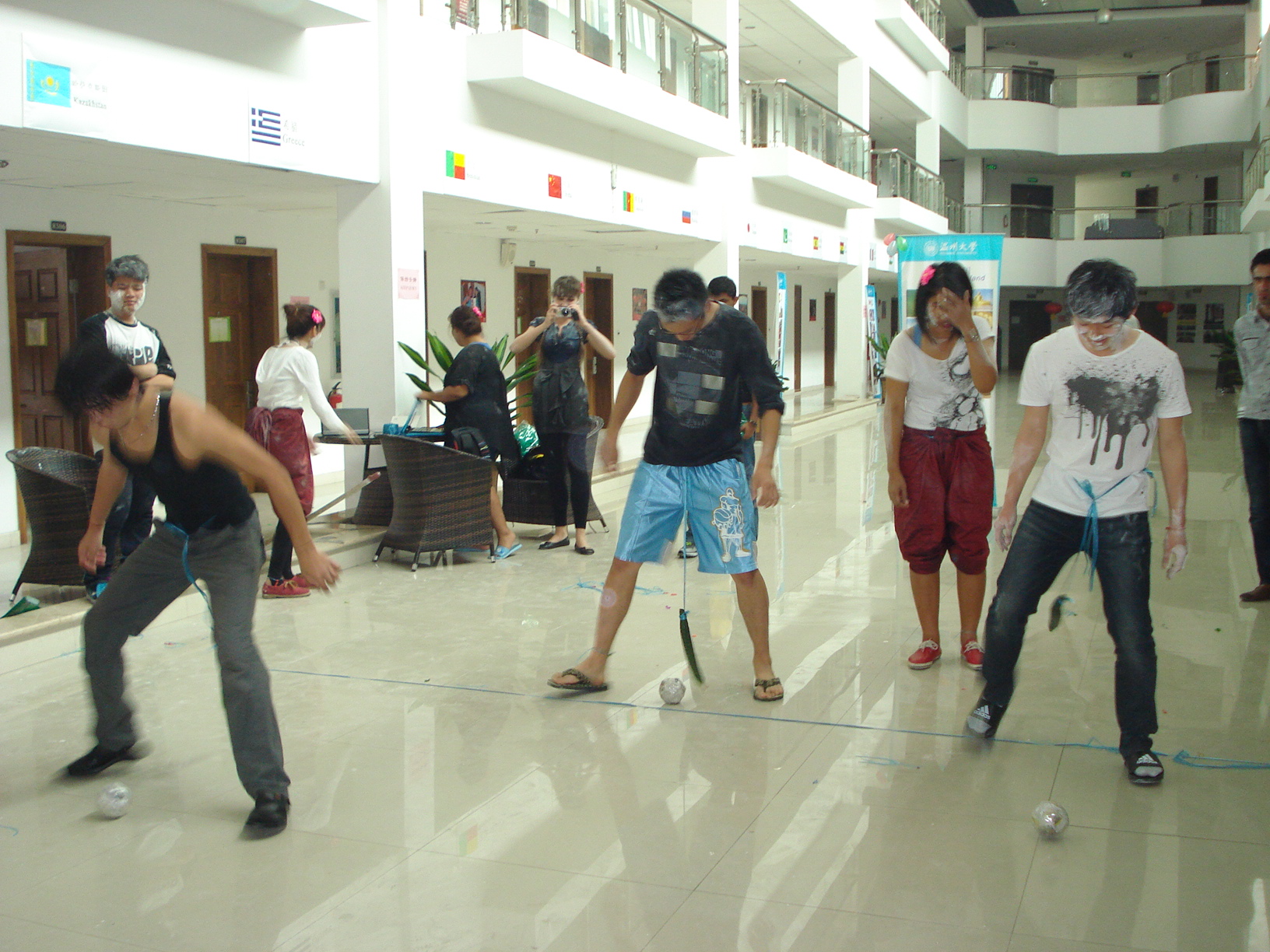 的泰国留学生在南校区专家楼用泰国传统仪式洒水礼以及民族舞蹈等形式,与五楼自拍