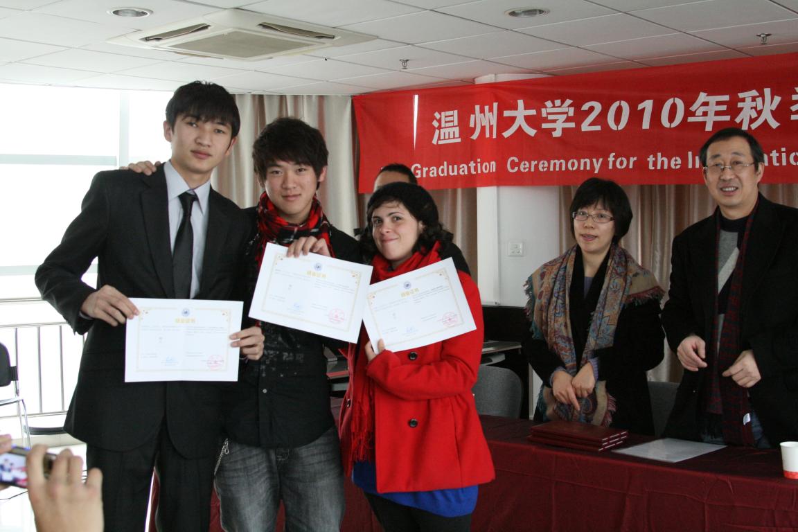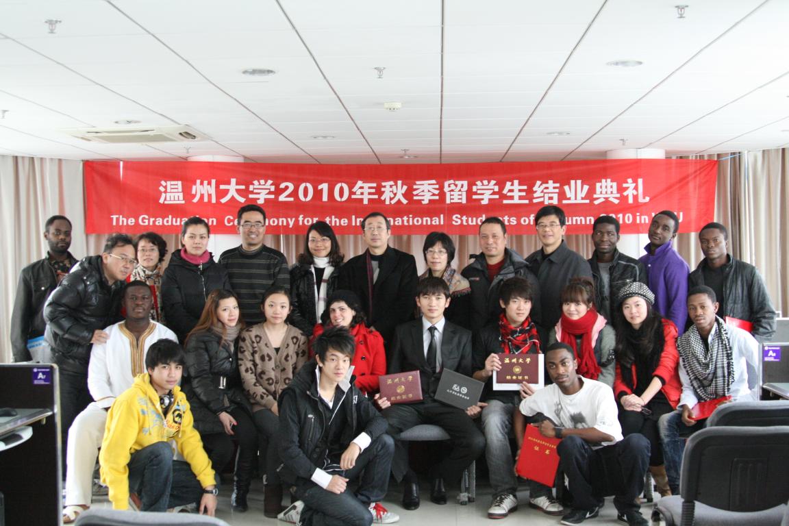 2010年秋季留学生结业典礼在南校区专家楼隆重举行。外事处副处长叶苗教授出席仪式并致词,五楼自拍