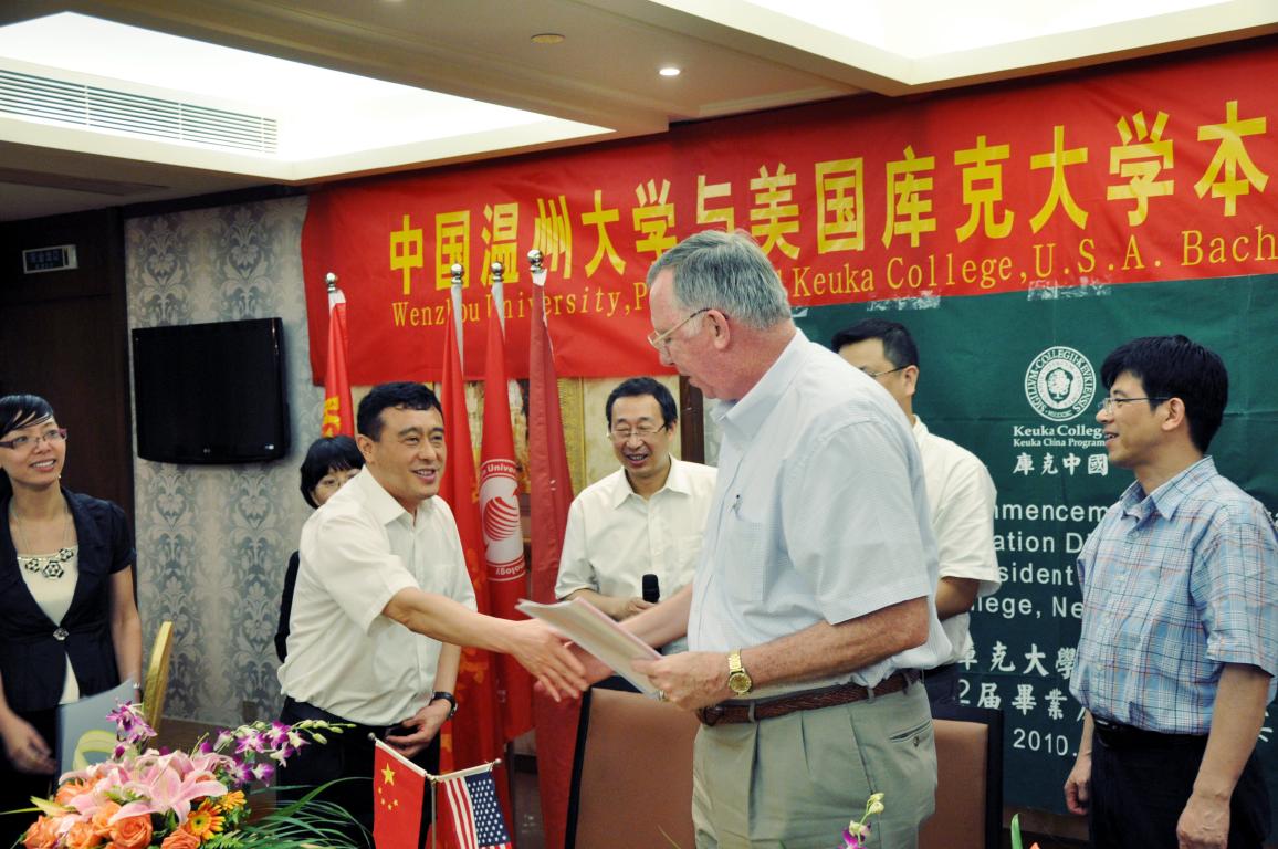 副校长薛伟与美国库克大学校长约瑟夫·博克签署4年制本硕连读管理学硕士学位项目(MSM)合作办学备忘录。