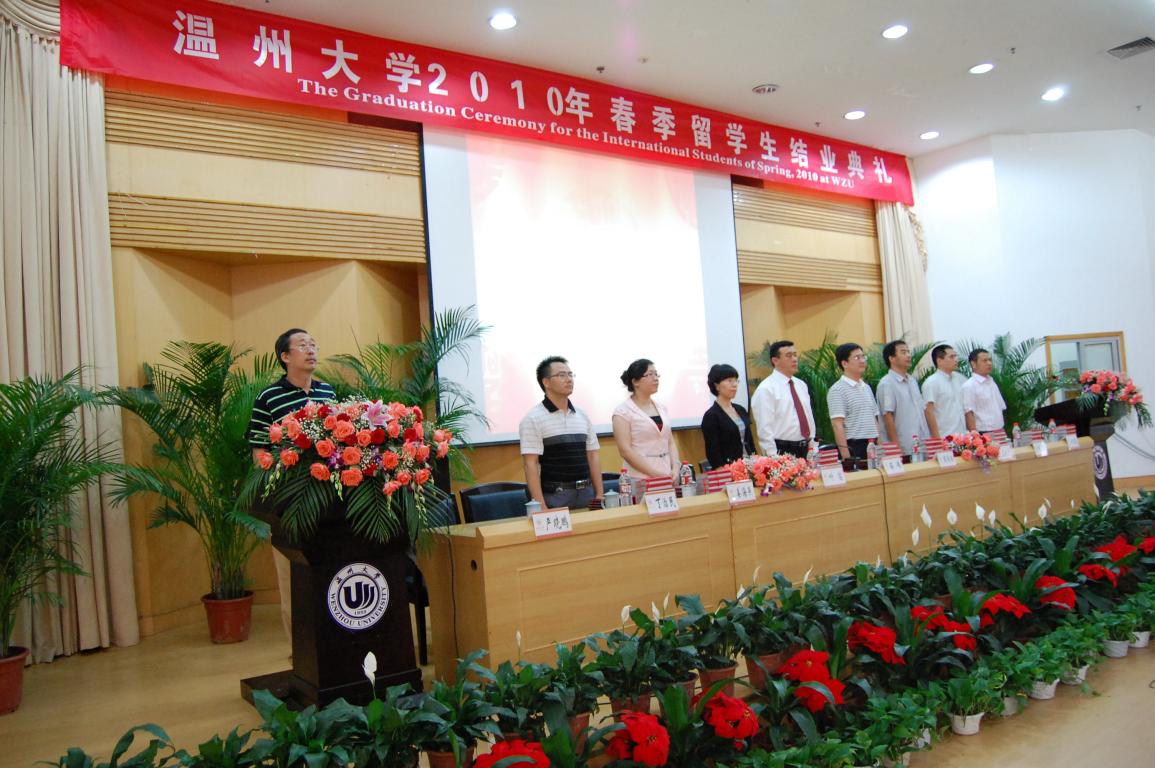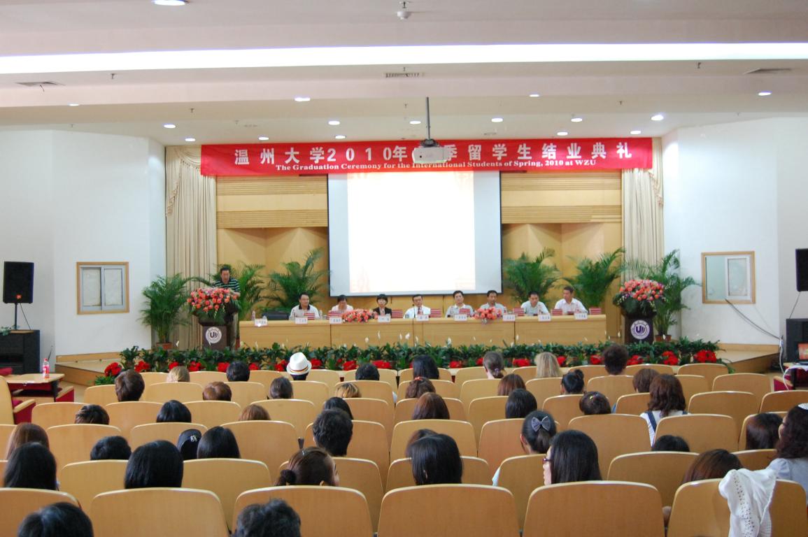 2010年春季留学生结业典礼于南校区雁山厅隆重举行。副校长薛伟教授出席。外事处、教务处、学生处、校友办公室、团委、人文五楼自拍