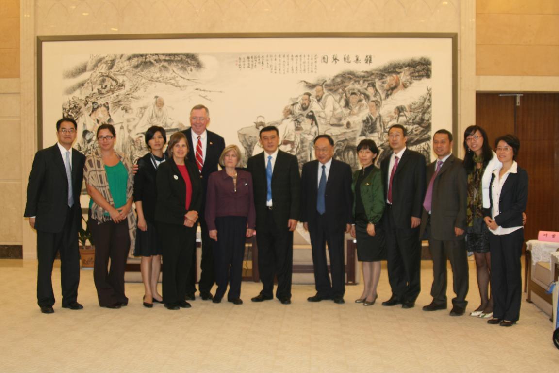 10月22日,美国库克大学董事长梅丽莎·布朗博士、校长乔瑟夫·博克博士、中国总校区行政校长黄天中博士、中央电视台先锋频道三位记者等一行12人来访五楼自拍