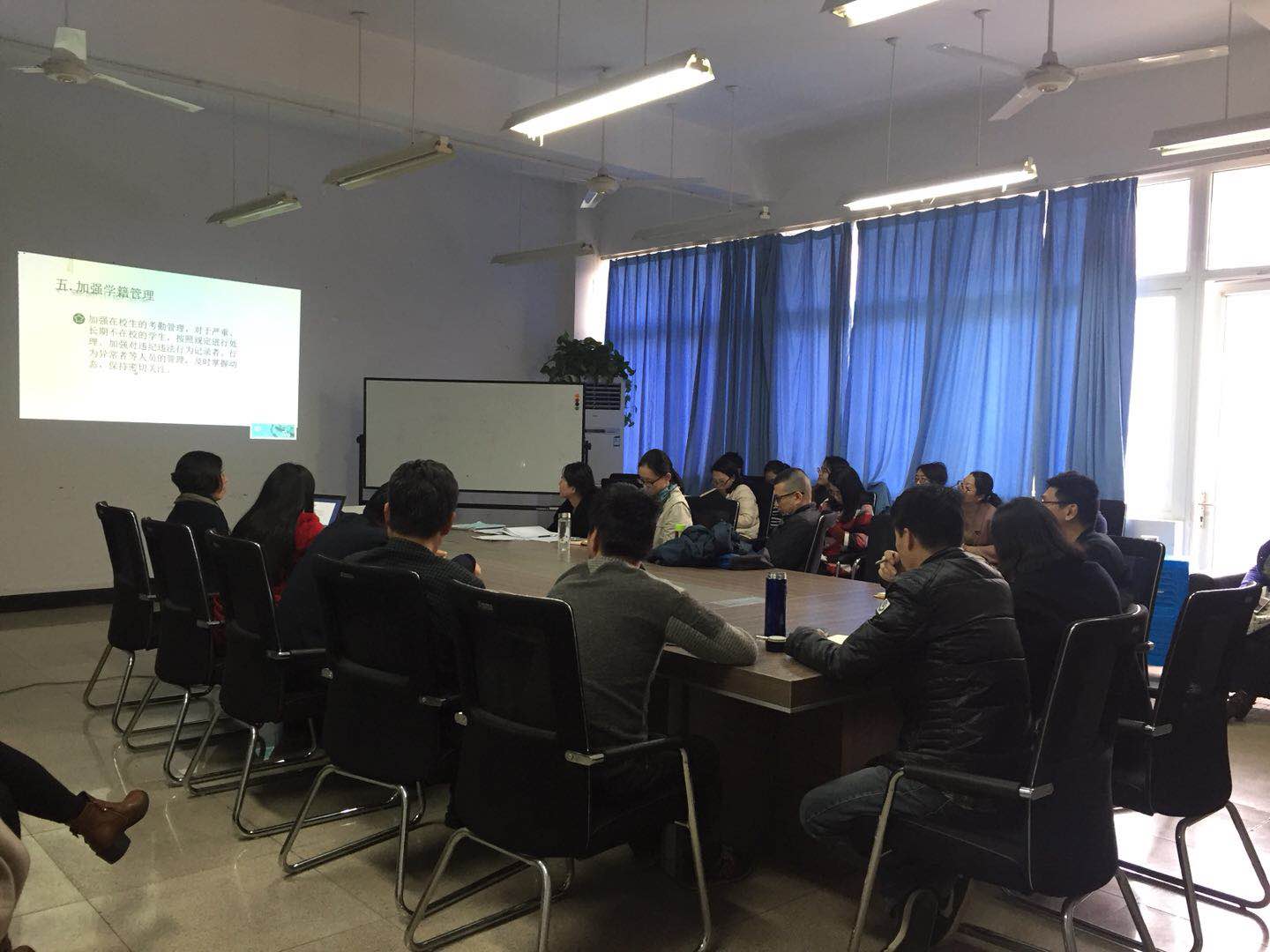 召开了全体教工大会,会议由五楼自拍